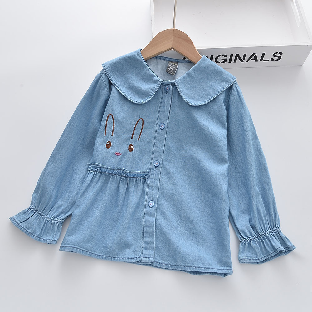 2022春季新款 小兔绣花 女童可爱娃娃领长袖衬衫
