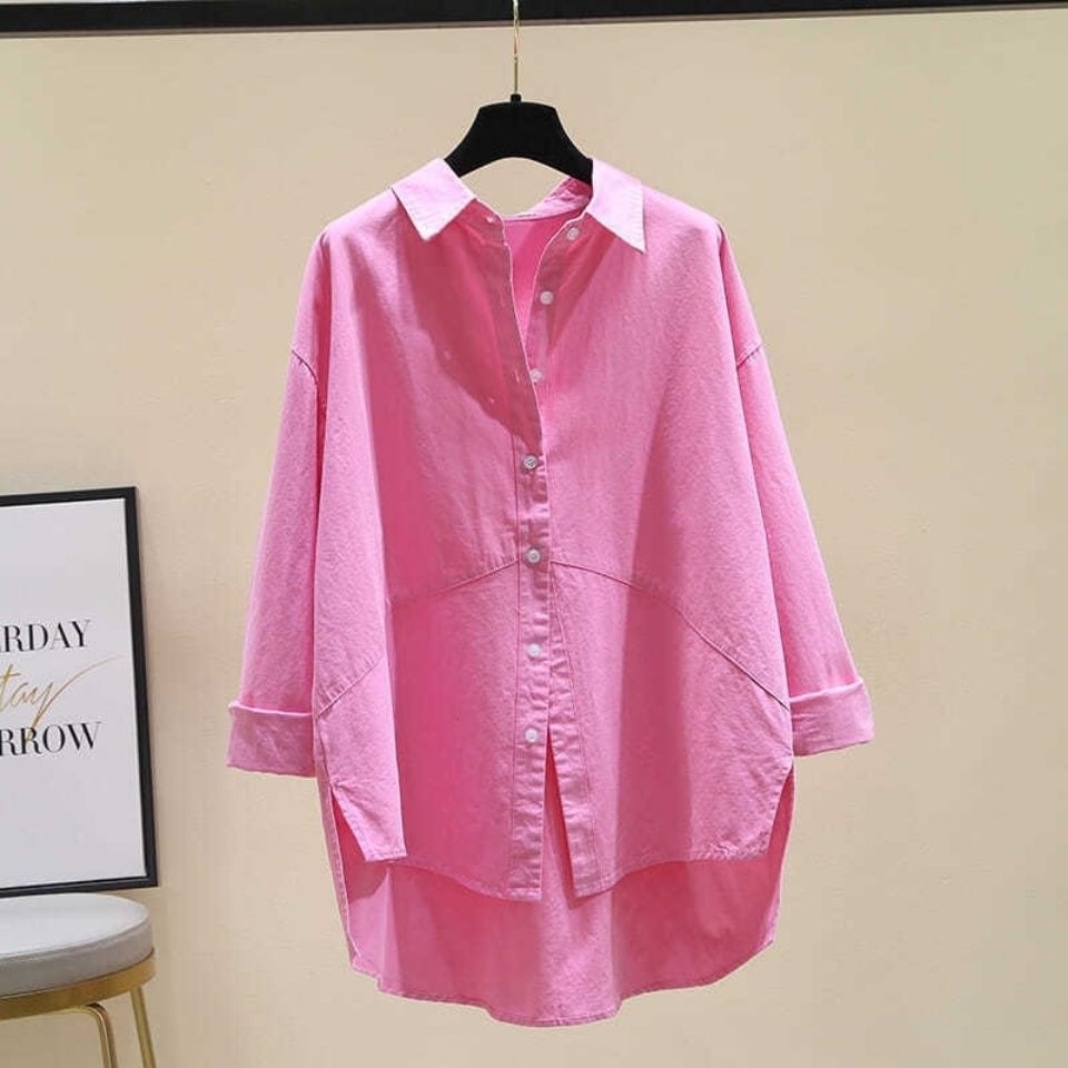 긴 소매 셔츠 봄 2022 새로운 한국 스타일 느슨한 서양 스타일 캐주얼 단색 셔츠 버튼 탑 코트