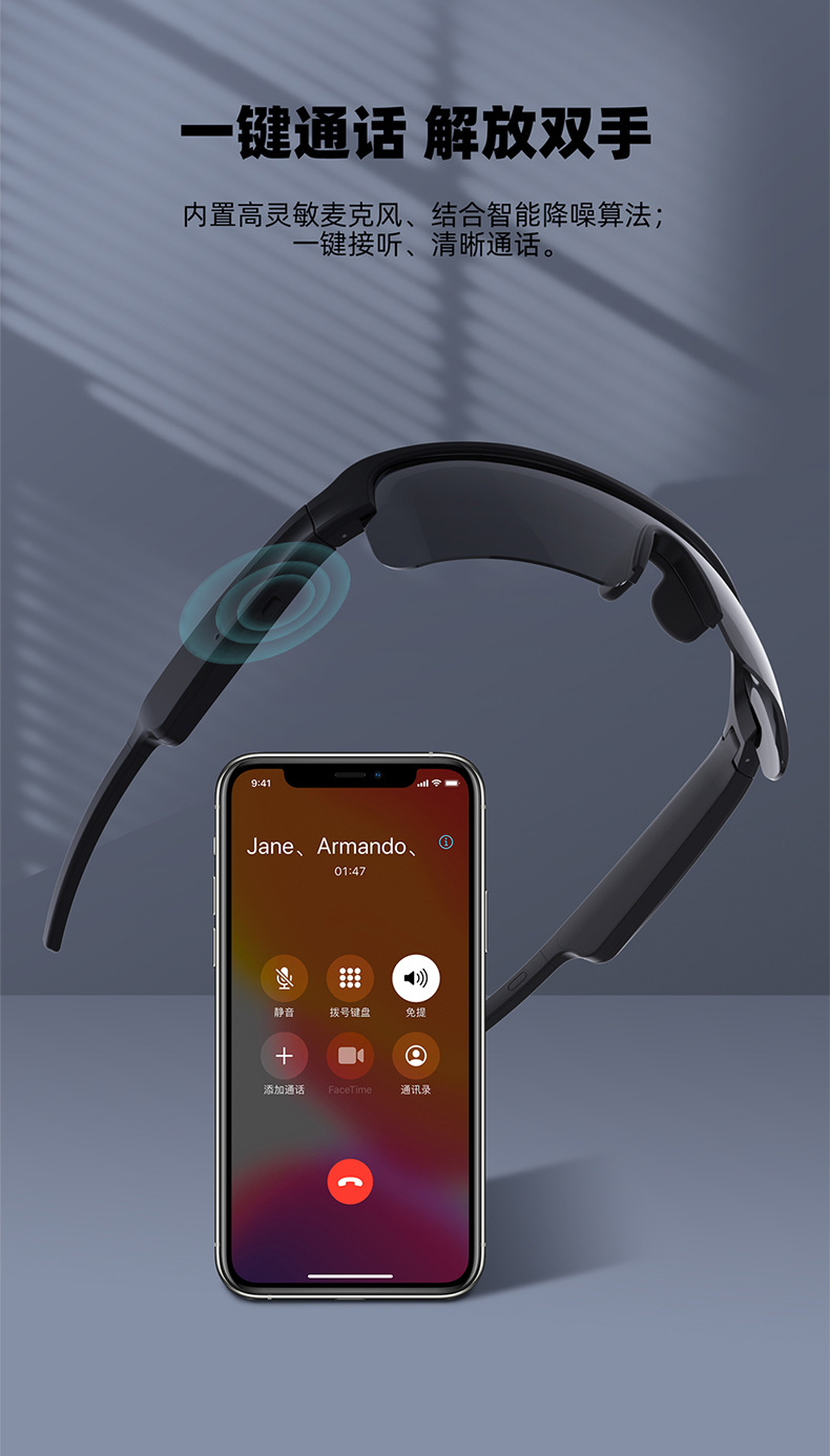 时尚大气款,集外放 蓝牙 太阳镜功能于一体