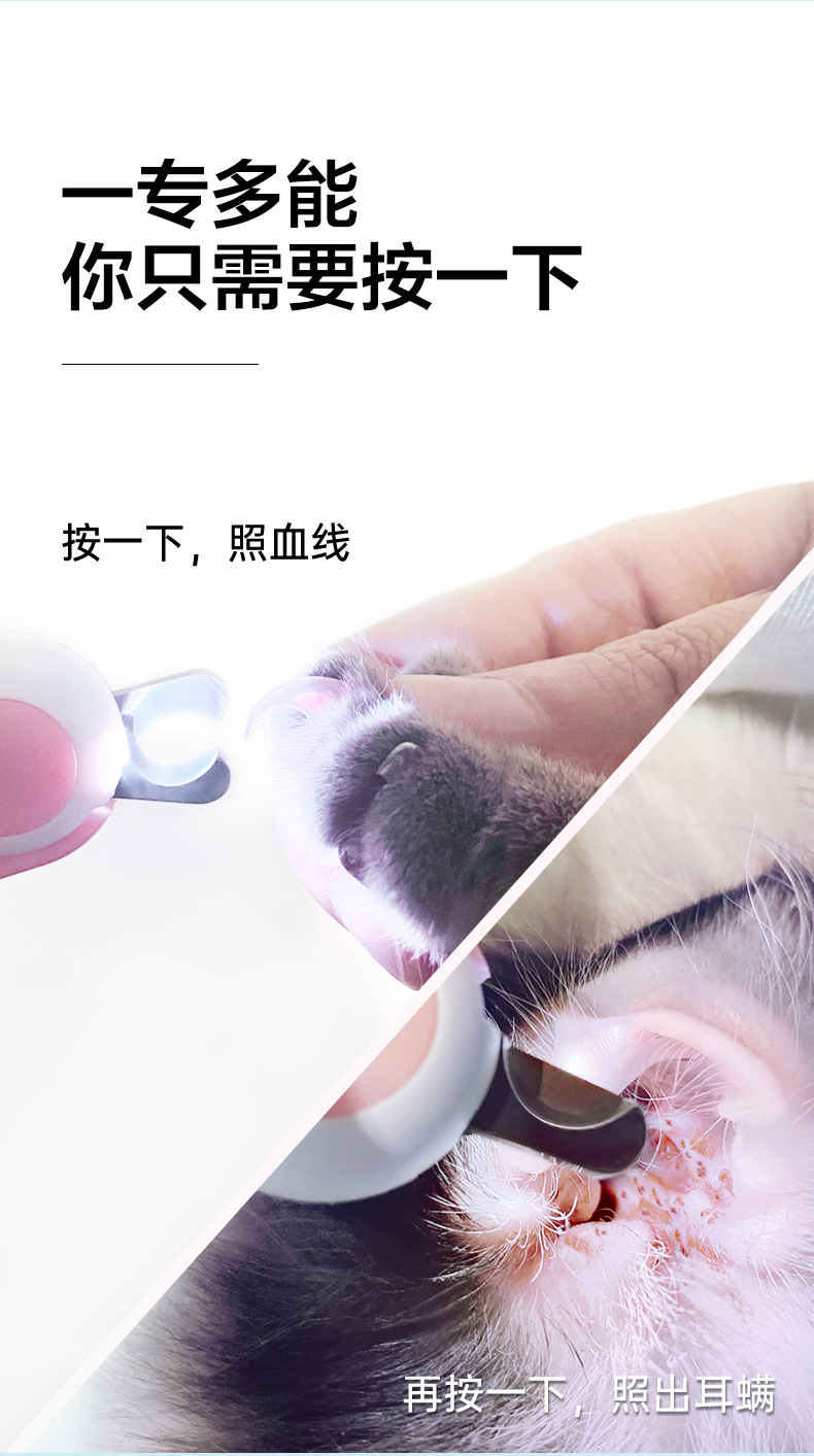 새로운 애완 동물 미용 청소 제품 LED 라이트 혈액 방지 고양이 손톱 분쇄기 애완 동물 손톱깎이 손톱깎이