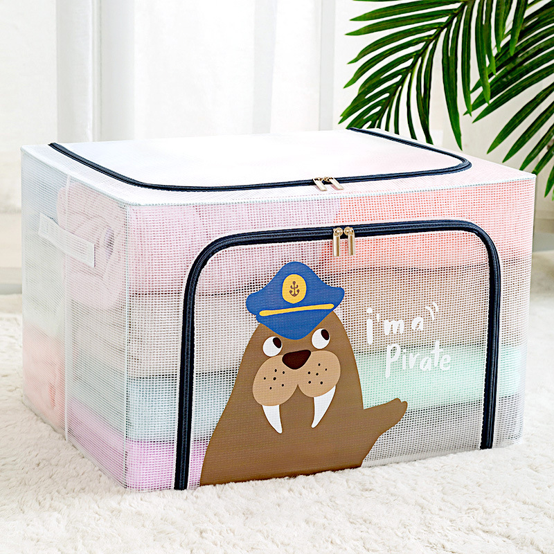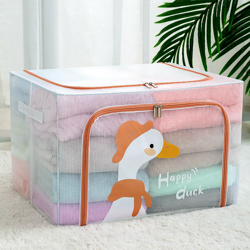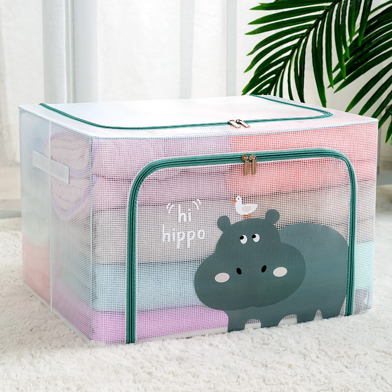 만화 옷 보관함 투명 보관함 그리드 스틸 프레임 마감 상자 장난감 이불 옷 캐비닛 마무리