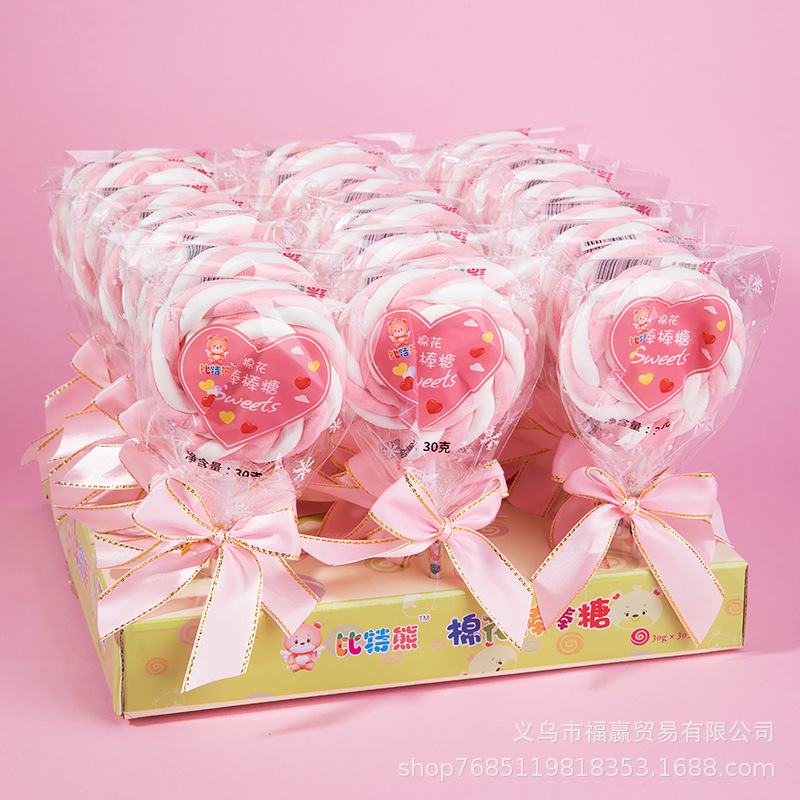 크리에이 티브 하트 모양의 곱슬 솜사탕 롤리팝 Q 탄성 거미 어린이 사탕 간식 전체 상자 30 도매스토어 가기