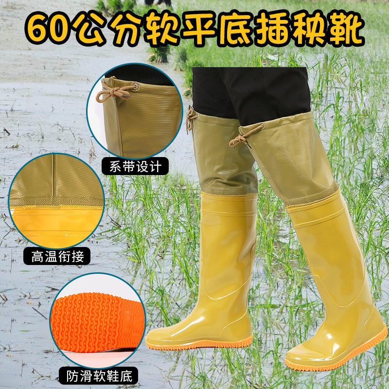 플러스 사이즈 농지 이식 신발 부드러운 밑창 논 신발과 양말 무릎 위 긴 튜브 벼 심기 물 신발 남성용 중간 튜브 논 장화와 팬티 스타킹스토어 가기
