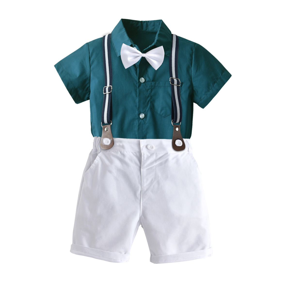 크로스 보더 남아 라펠 반팔 셔츠 스트랩 여름 새로운 반바지 세트 어린이 보물 여름 6 월 1 일 원피스