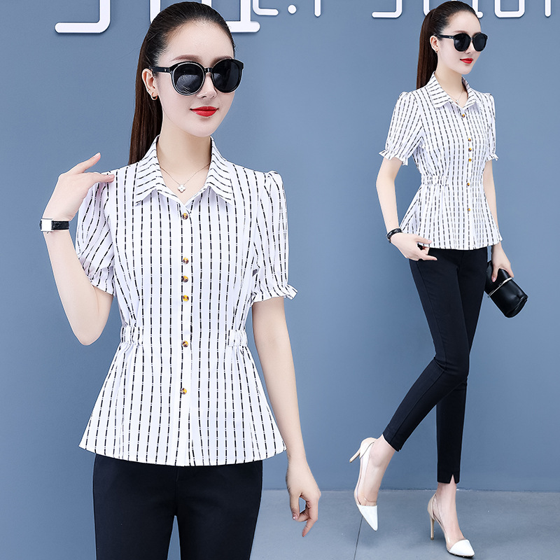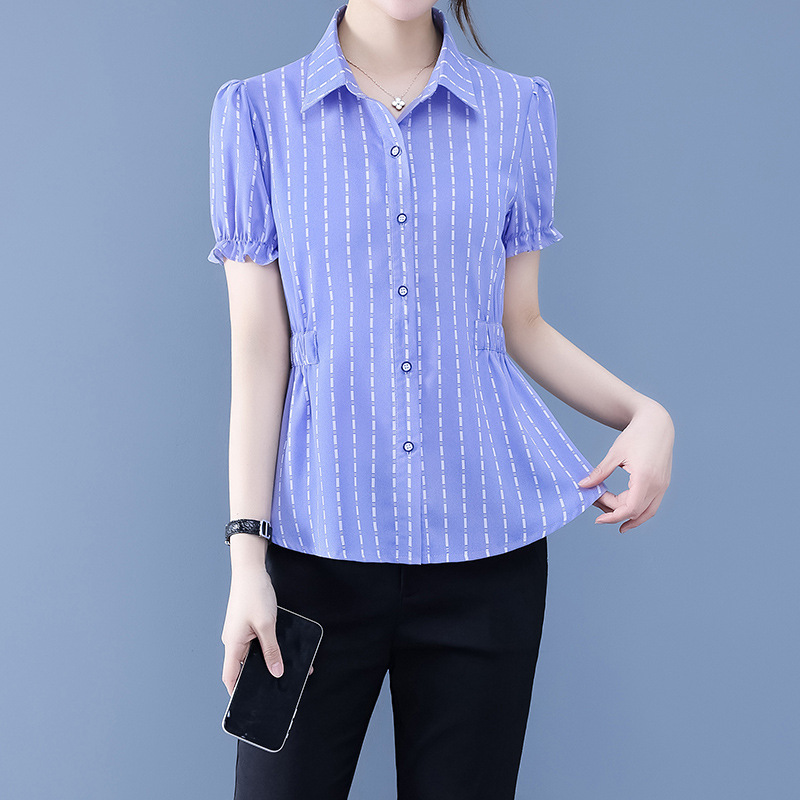 여름 신상 한국 스타일 프린트 셔츠 여성 반팔 상의 슬림핏 쉬폰 셔츠 큰 사이즈 패셔너블 여성 셔츠 도매