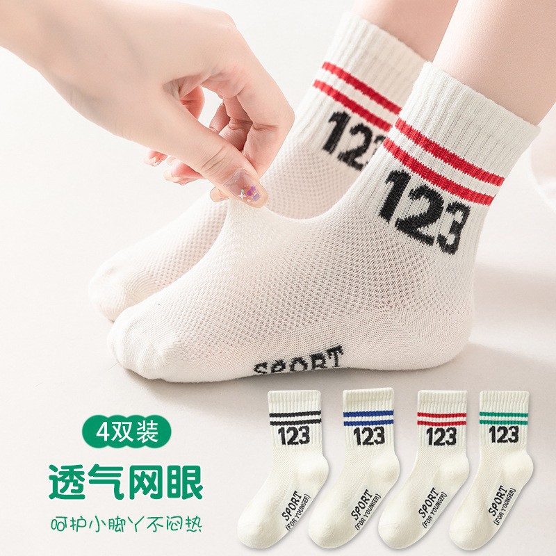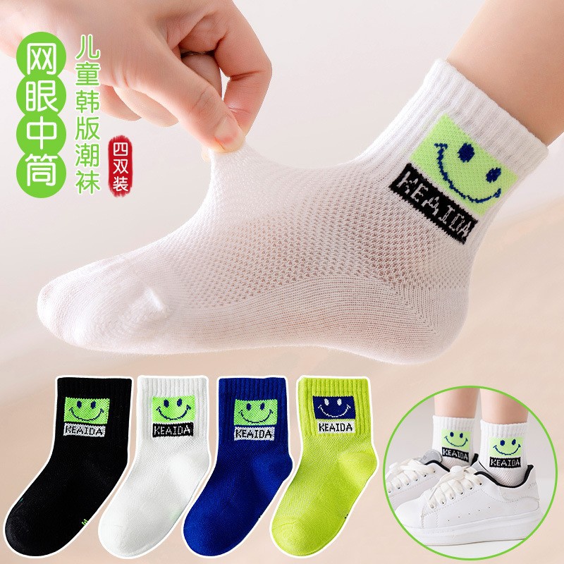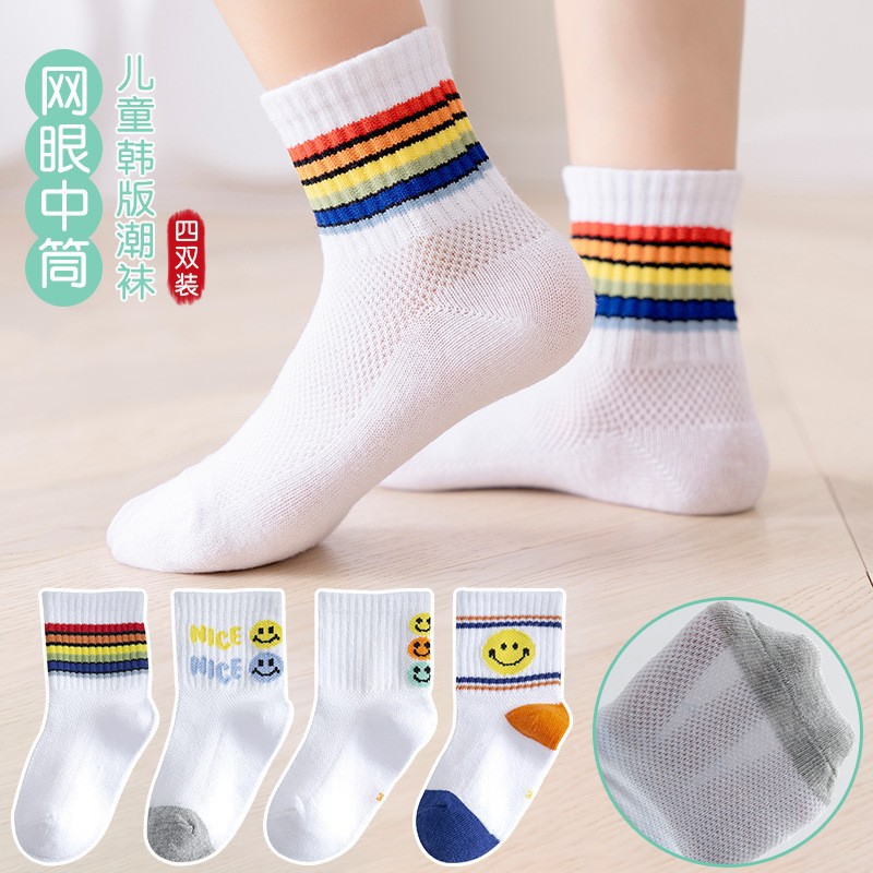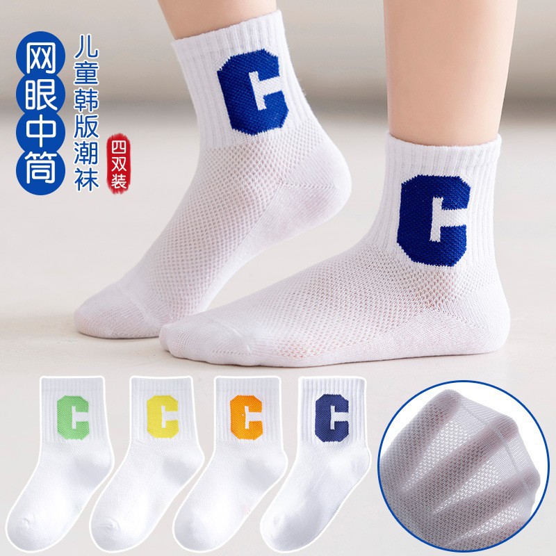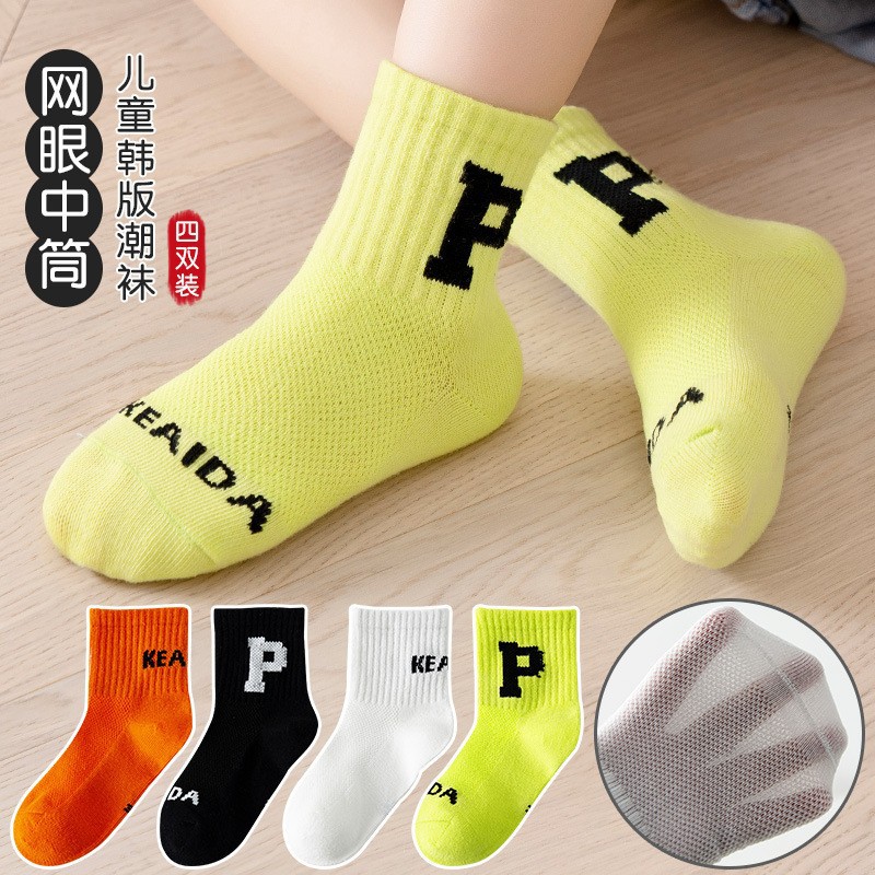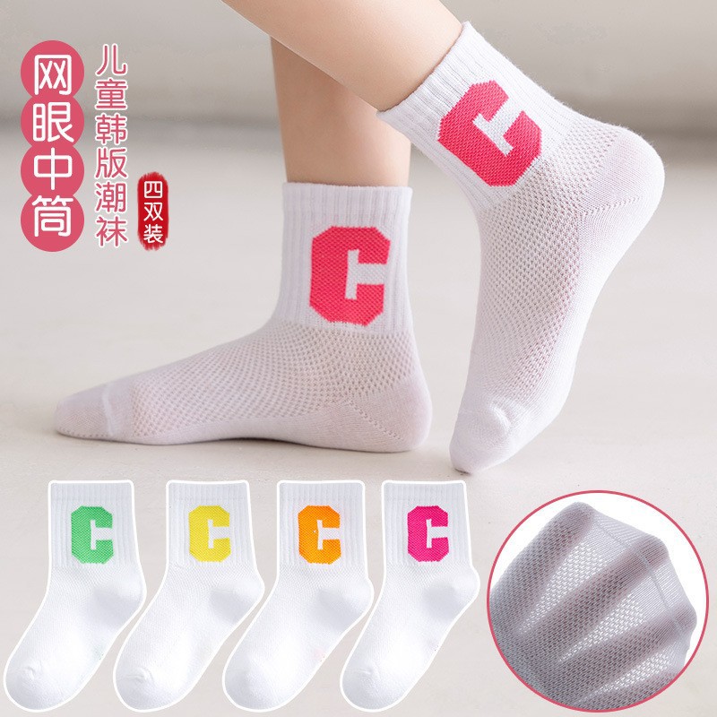 어린이 양말 봄과 가을 얇은 한국 스타일 유행 양말 단색 소년과 소녀 여름 메쉬 짧은 양말 대형 어린이 양말