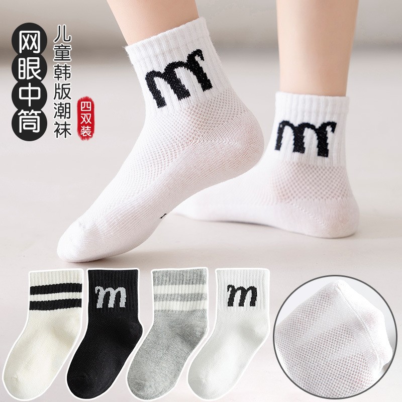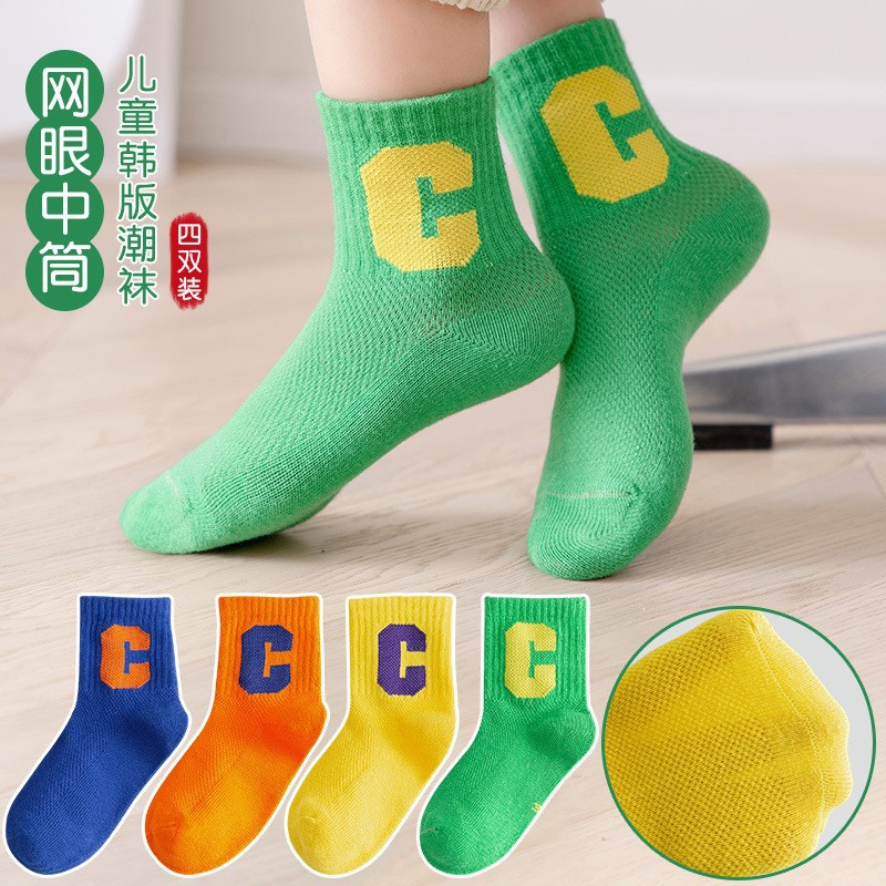어린이 양말 봄과 가을 얇은 한국 스타일 유행 양말 단색 소년과 소녀 여름 메쉬 짧은 양말 대형 어린이 양말스토어 가기