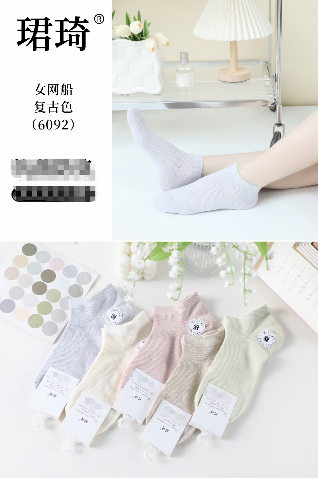 [통기성 메쉬] Qiqi 6092 봄, 여름, 가을 여성 짧은 튜브 통기성 메쉬 흑백 회색 캔디 컬러 코튼 보트 양말스토어 가기