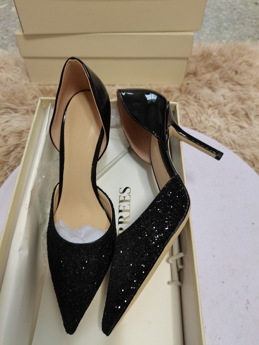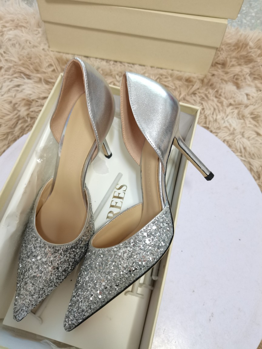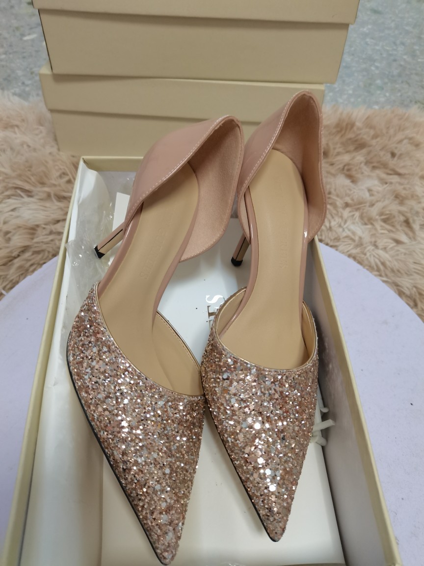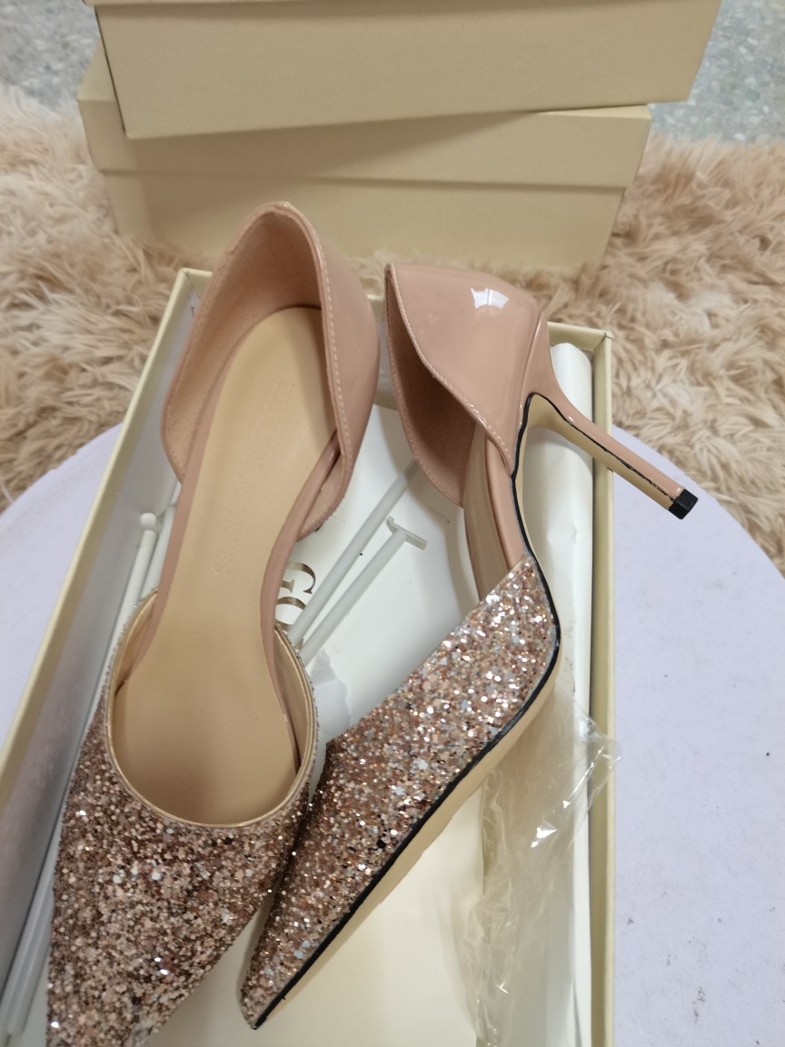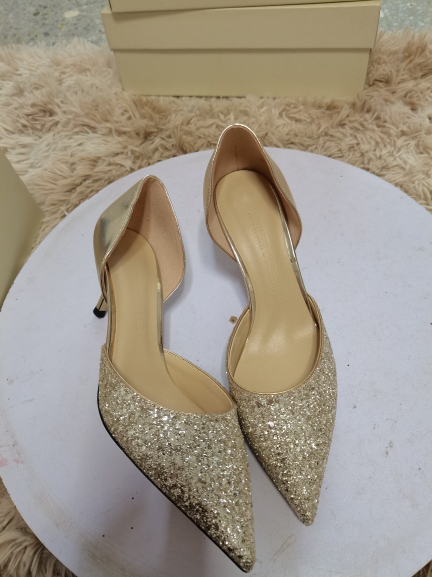 봄 2022 지미 웨딩 슈즈 여성용 뾰족한 스티치 가죽 여성 신발 스팽글 우아한 연회 펌프스토어 가기