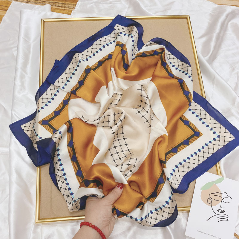 프랑스 기질 작은 사각형 스카프 여자의 모조 실크 장식 전문 스카프 웨이브 포인트 조커 세트 실크 스카프 헤어 밴드 도매스토어 가기