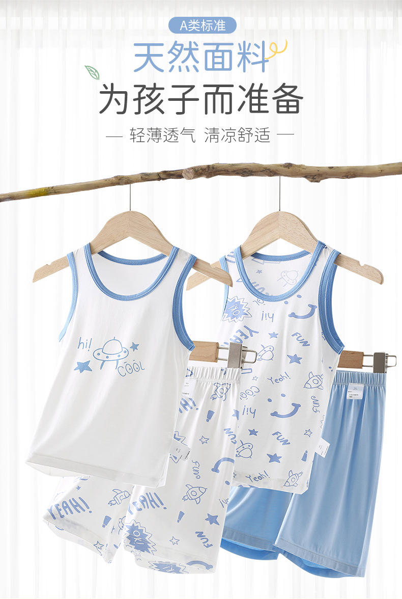 아동용 잠옷 A급 여름 남아 조끼 세트, 모달 한국식 민소매 티셔츠, 얇은 에어컨 의류스토어 가기