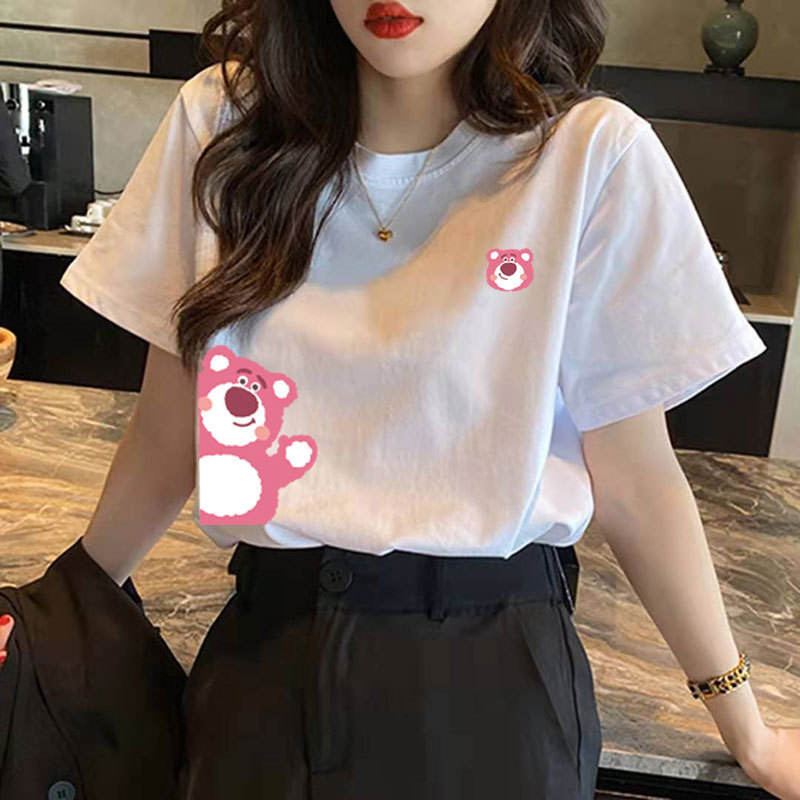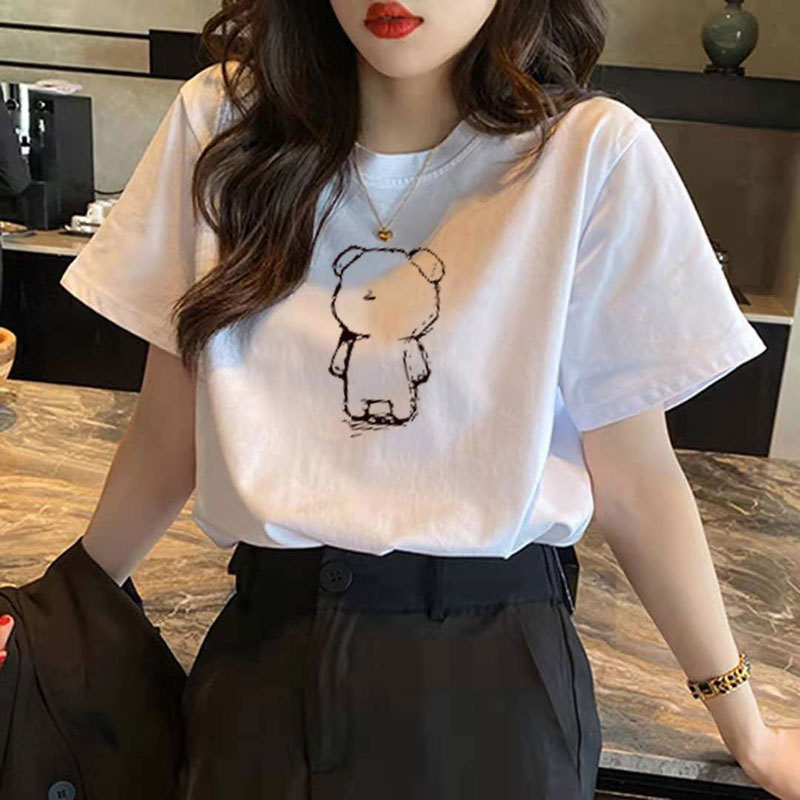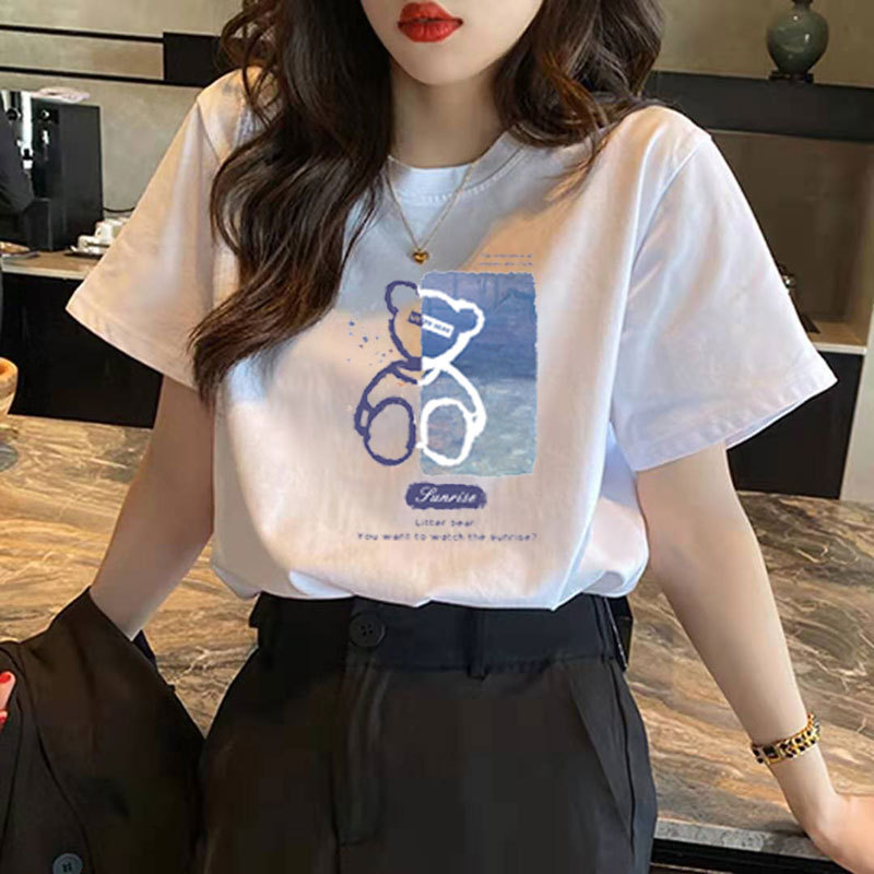 순면 곰돌이 반팔 티셔츠 여성 여름 2026 신상 하라주쿠 스타일 디자인 유니크 화이트 반팔 티셔츠 인스타 트렌드스토어 가기