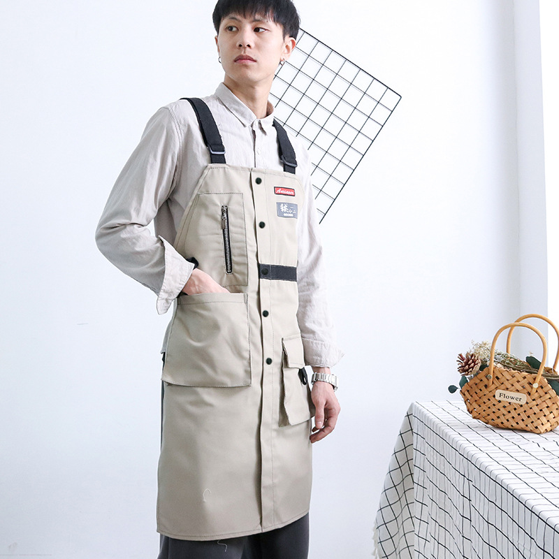 캔버스 앞치마 로고 인쇄 홈 주방 카페 우유 차 가게 베이킹 네일 아트 헤어 페인팅 작업복 여성