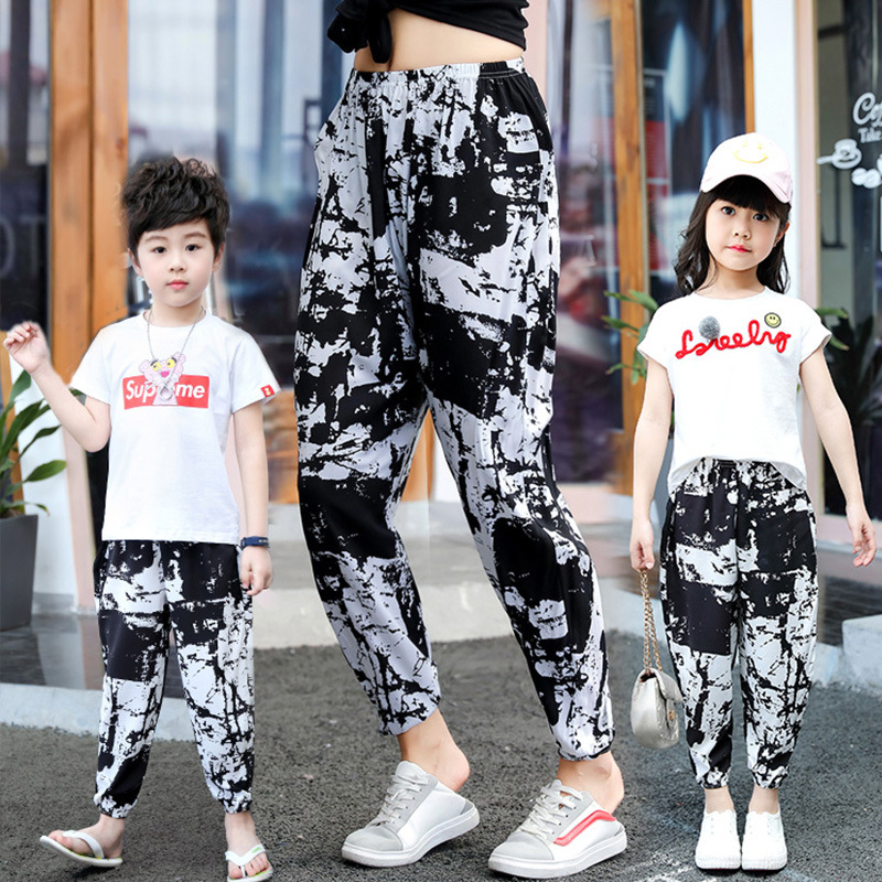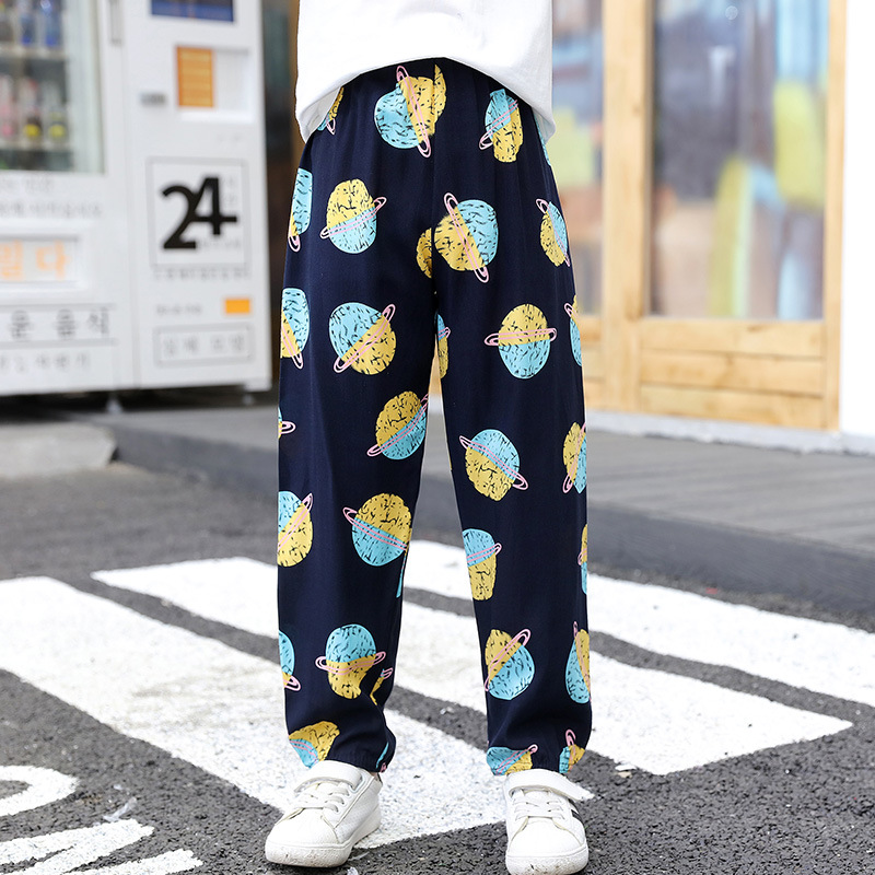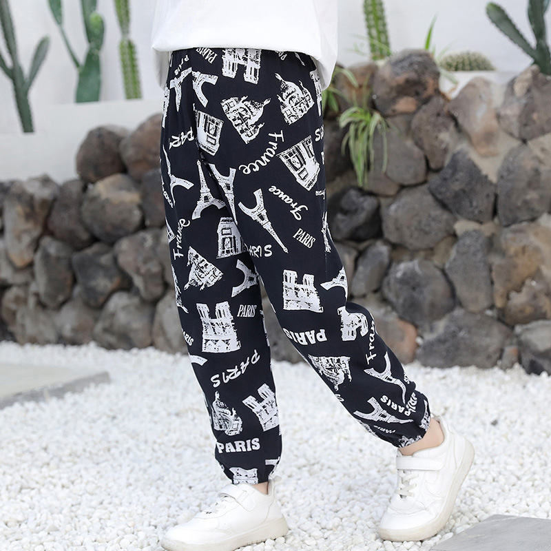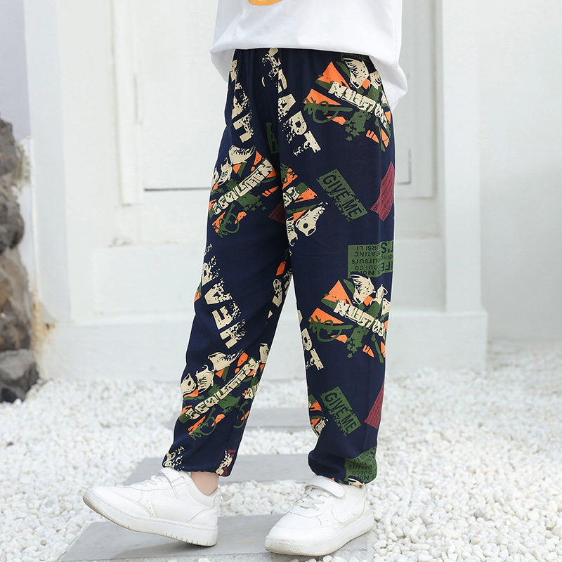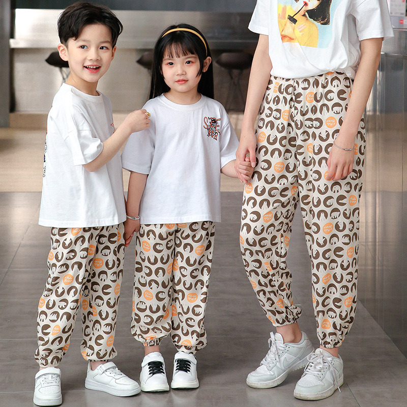 2023 어린이 모기 방지 바지 여름 얇은 소년 소녀 아기 면 실크 캐주얼 느슨한 통기성 블루머 바지
