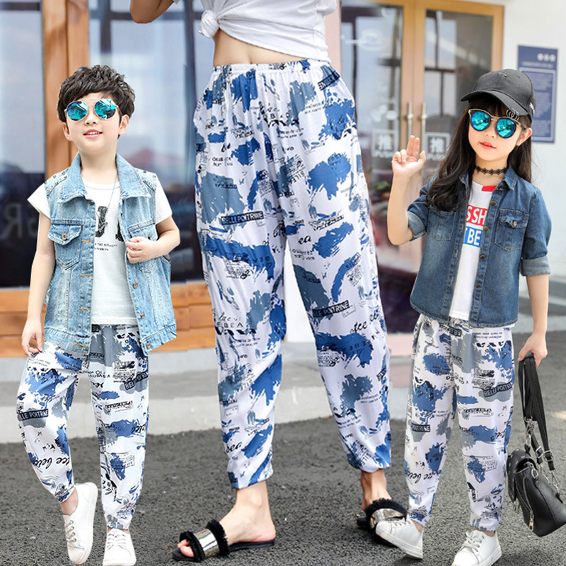 2023 어린이 모기 방지 바지 여름 얇은 소년 소녀 아기 면 실크 캐주얼 느슨한 통기성 블루머 바지스토어 가기