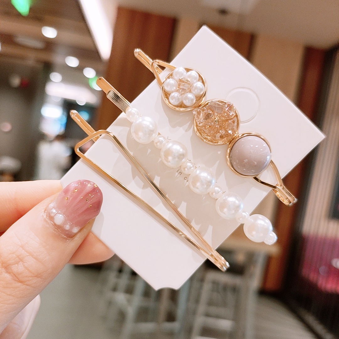 Siteng 같은 스타일 진주 머리핀 한국식 동대문 여성용 라인 석 한 단어 머리핀 우아한 학생 옆 머리핀 헤어 액세서리스토어 가기
