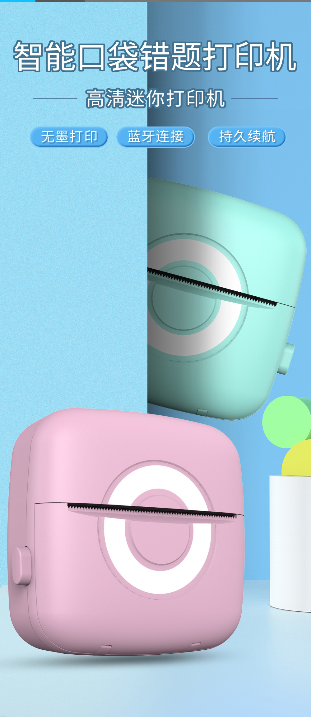 • C13 핑크 + 5 롤 인쇄 용지 + 5 컬러 펜
