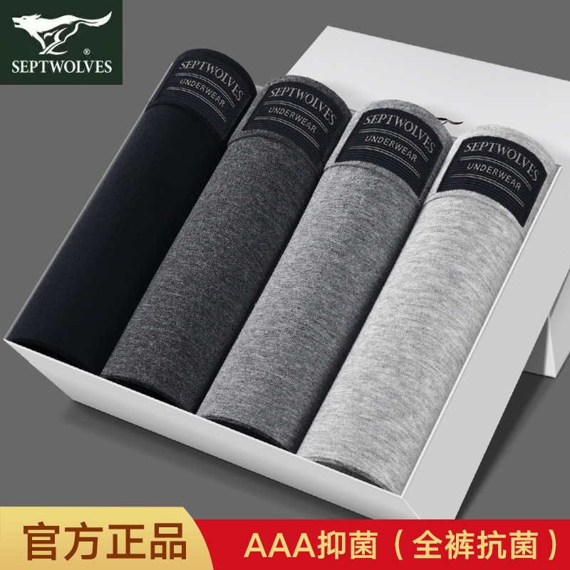 일곱 늑대 속옷 복서 바지 그래 핀 항균 남성면 암모니아 속옷 회색 복서 바지 남성 속옷 4