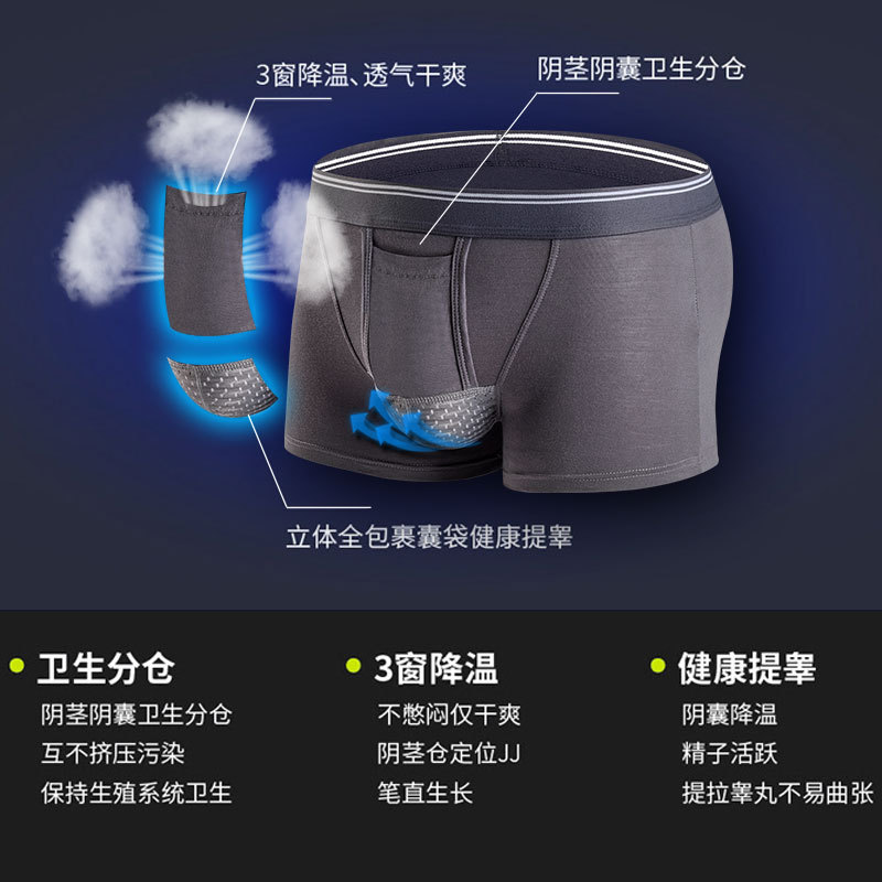 남자의 단색 모달 가방 통기성 스포츠 통기성 총알 분리 간단한 복서 팬티