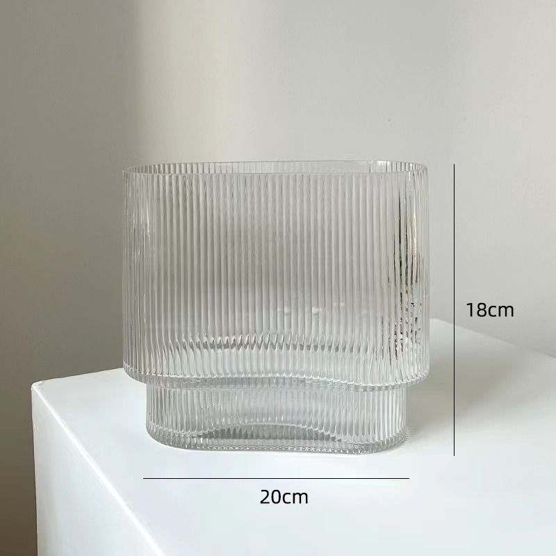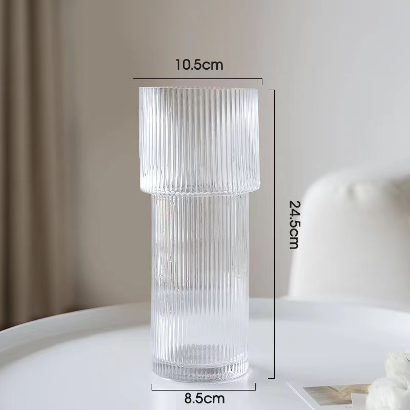 투명 크리 에이 티브 유리 꽃병 수직 패턴 토치 플랫 실린더 유럽 스타일 장식 꽃병 꽃 말린 꽃 거실 장식 도구