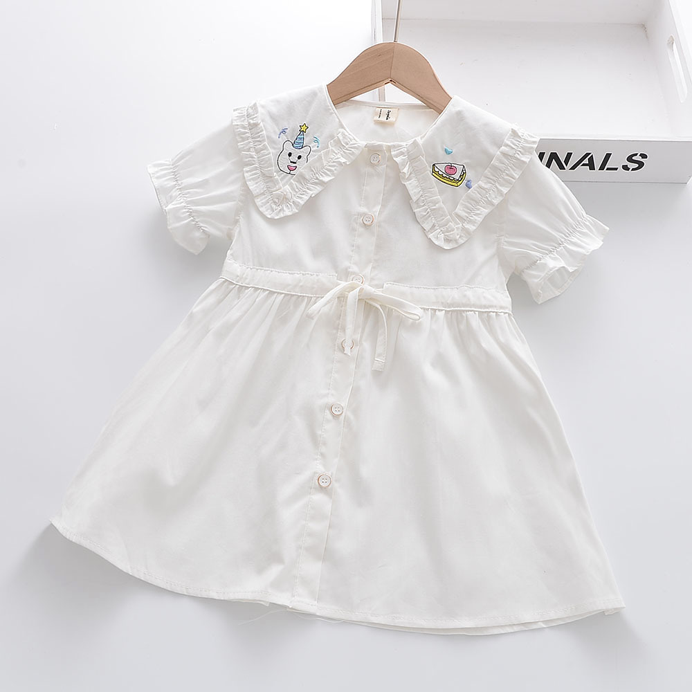 2022 여름 새로운 만화 수 놓은 큰 옷깃 여자 데님 코튼 반팔 드레스 0126-65