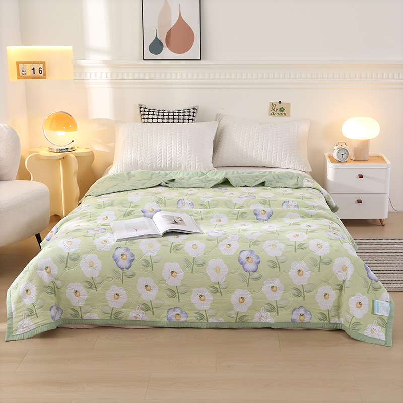水洗棉夏被:适合商场超市专卖店销售 高档礼品活动现场,手感柔软舒适 不褪色 手工包边。