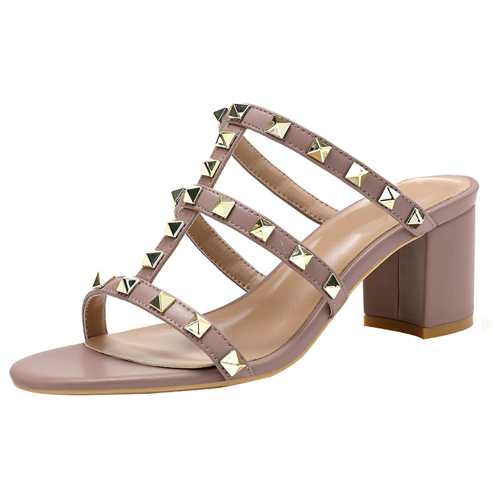 로마 샌들 여성용 두꺼운 굽 2025 휴가용 리벳 슈즈 여성용 아웃도어 비치 오픈토 피쉬마우스 슬리퍼 리벳 샌들