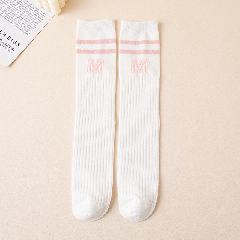 가을 아동용 롱삭스, 여학생용 얇은 니삭스, 유아용 무릎 위까지 오는 양말, 레터 자카드스토어 가기