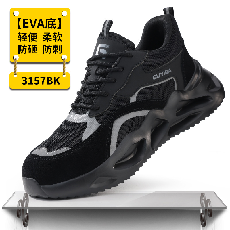 남성용 여름 노동 보호 신발, 충격 방지 및 펑크 방지 강철 발가락 신발, 통기성, 가볍고 부드러우며 편안하고 안전한 건설 현장 작업 보호 신발