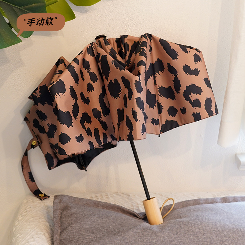 레오파드 프린트 완전 자동 우산 프랑스 복고풍 태양 우산 태양 보호 자외선 차단 맑고 비 이중 목적 접는 우산