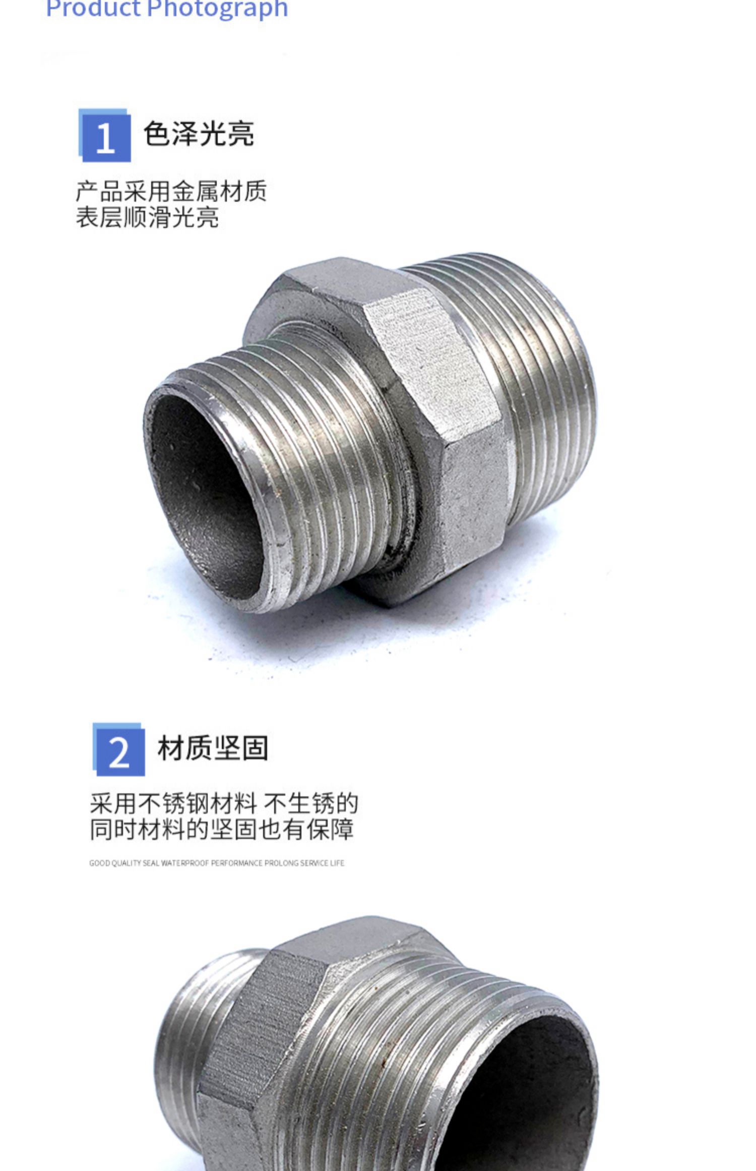 304 스테인레스 스틸 육각형 외부 와이어 직경 크고 작은 머리 외부 치아 직접 짧은 조인트 스트레이트 내부 엉덩이 피팅 1 인치 감소스토어 가기