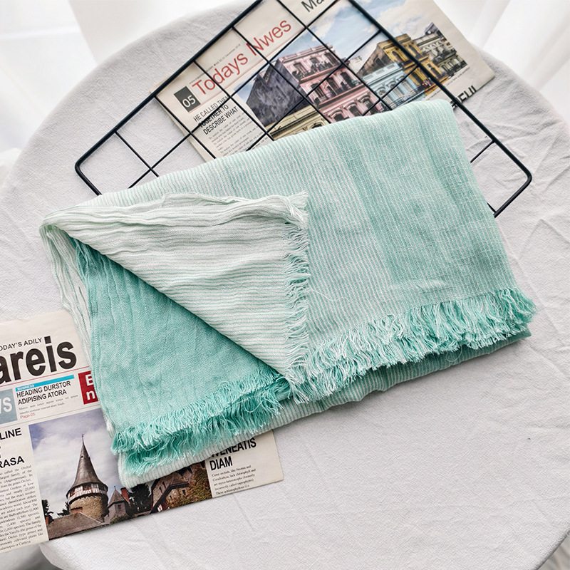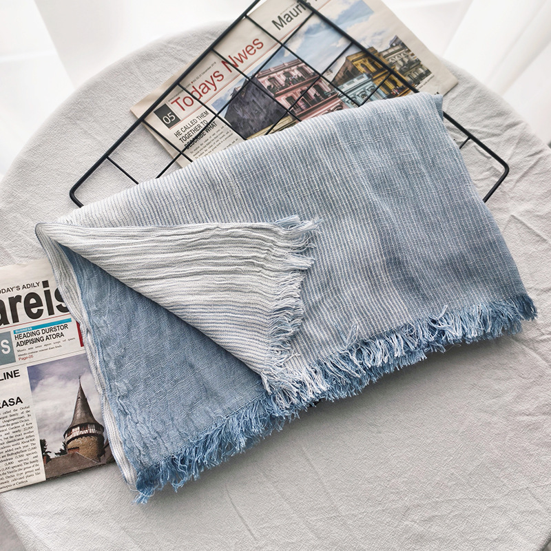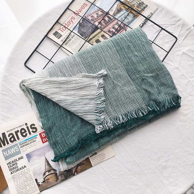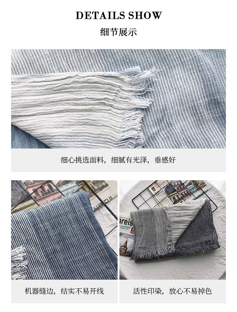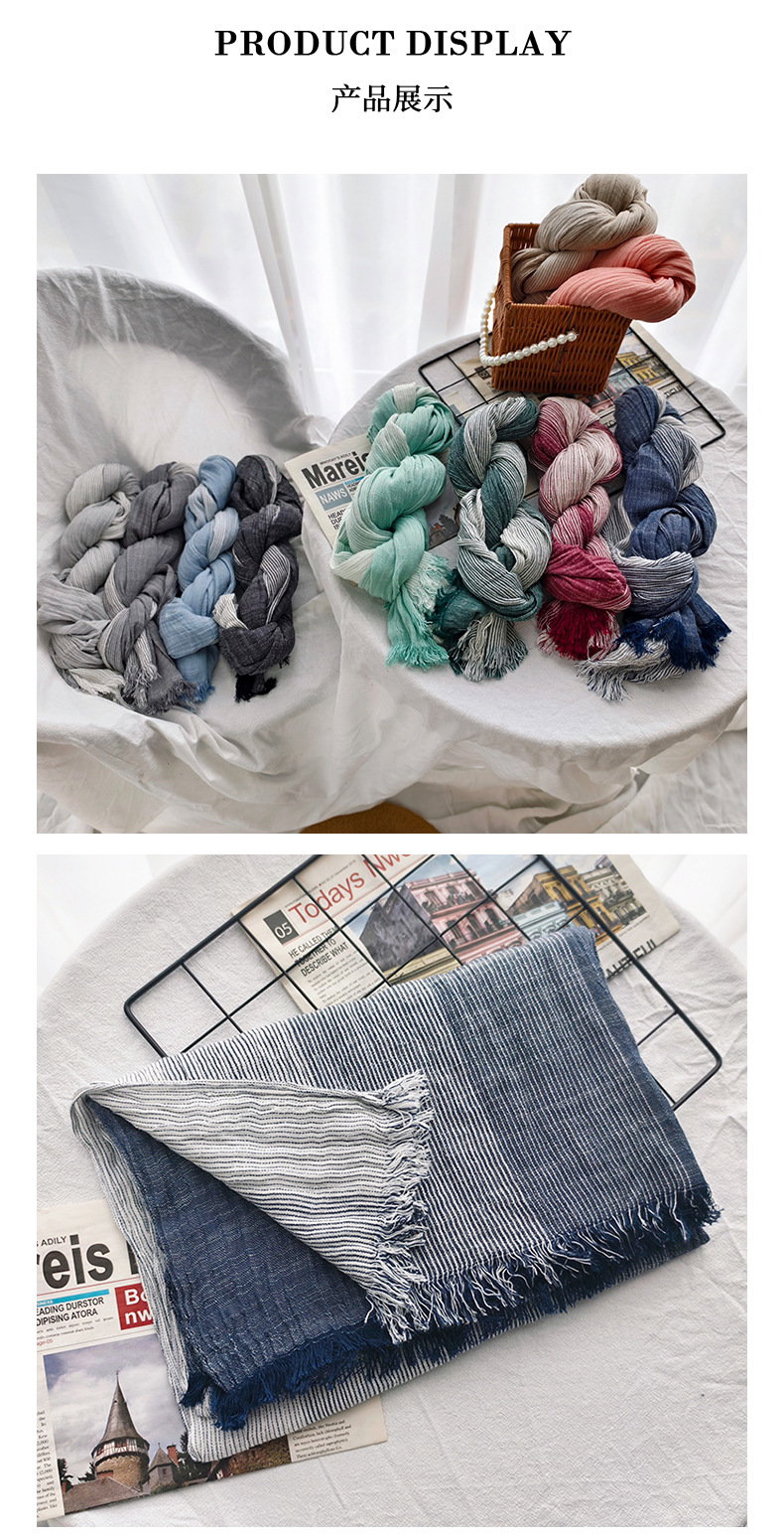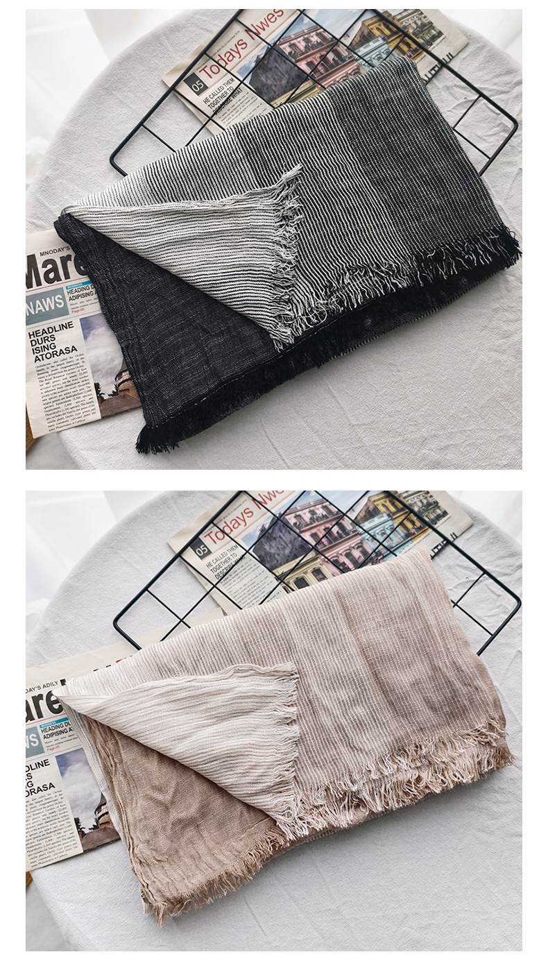 신상 일본 및 한국 문예풍 스트라이프 스카프 여성용 숄 커플용 배색 양면 남성용 숲속 소녀 스타일 실크 스카프 다용도스토어 가기