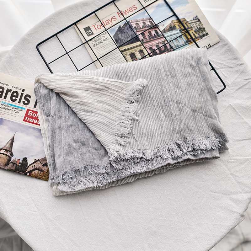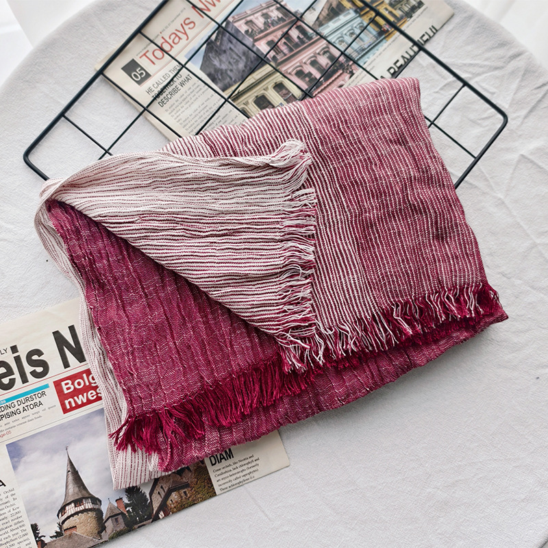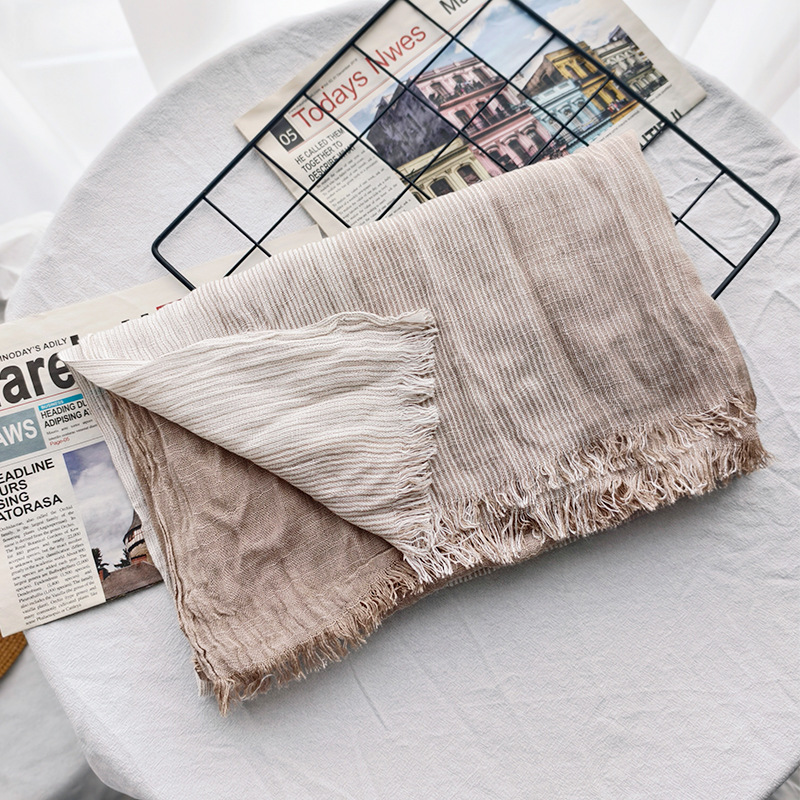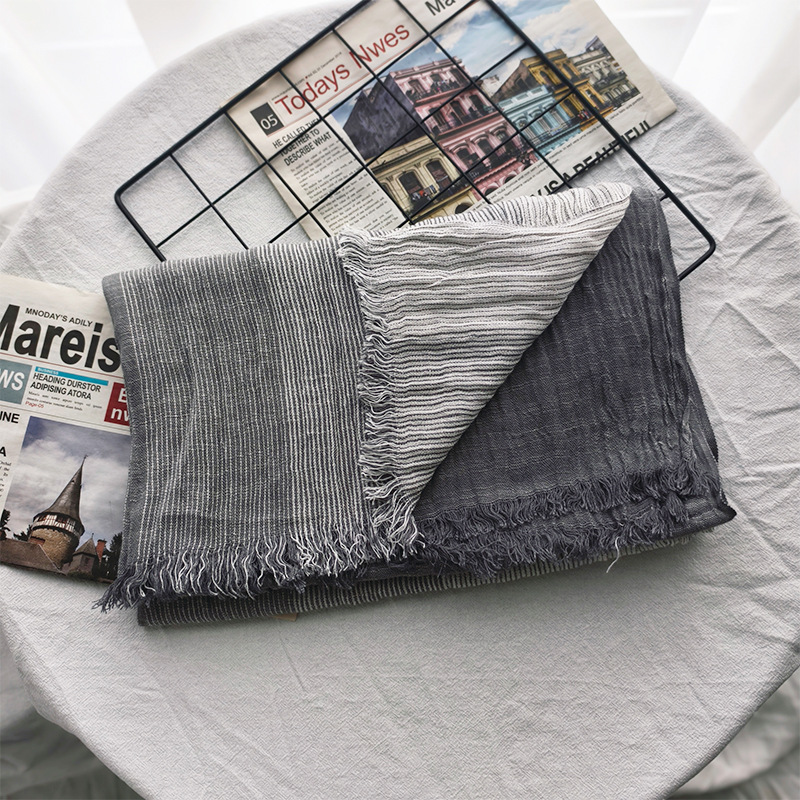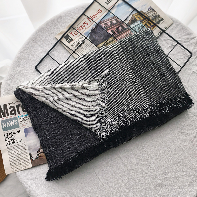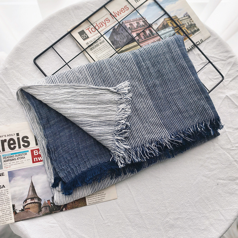 신상 일본 및 한국 문예풍 스트라이프 스카프 여성용 숄 커플용 배색 양면 남성용 숲속 소녀 스타일 실크 스카프 다용도