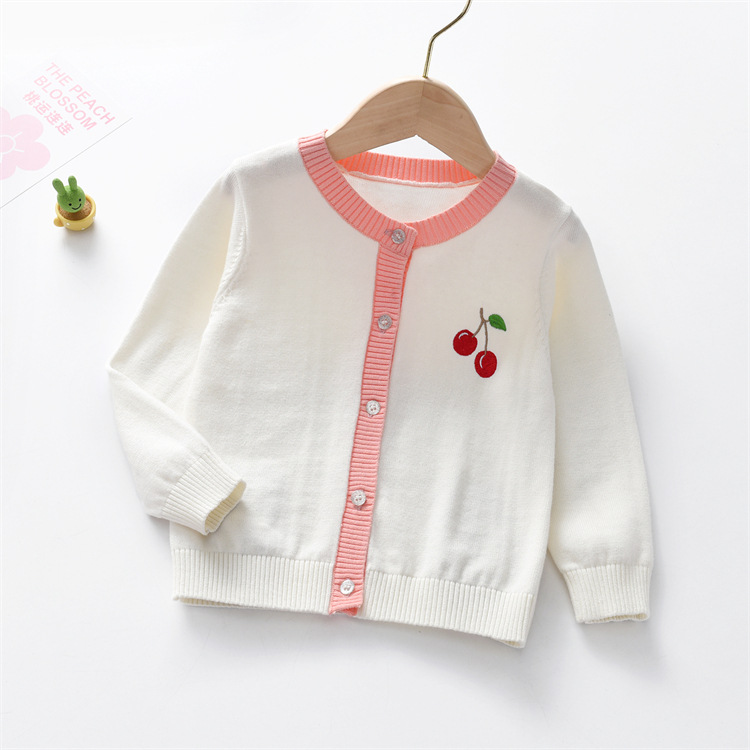 소녀 코트 퓨어 코튼 니트 스웨터 2024 봄과 가을 새 아기 자수 어린이 카디건 올 매치 웨스턴 스타일 스웨터스토어 가기