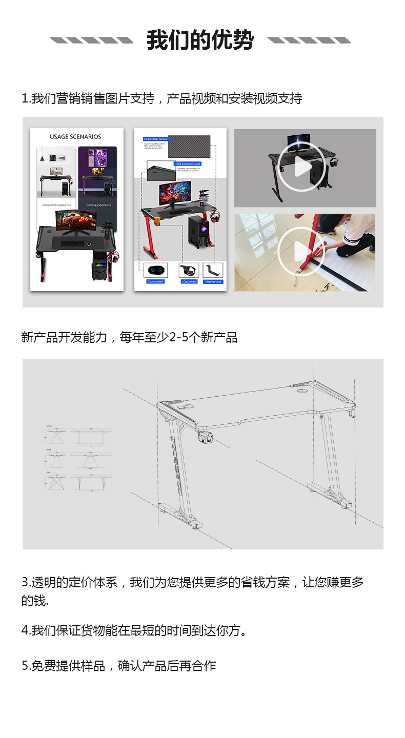최고의 게이밍 책상, 게임용 책상, 가정용 컴퓨터 책상, 데스크탑 외국 무역용 RGB 조명 전자책상, 인터넷 카페 책상, 라이브 방송용 책상