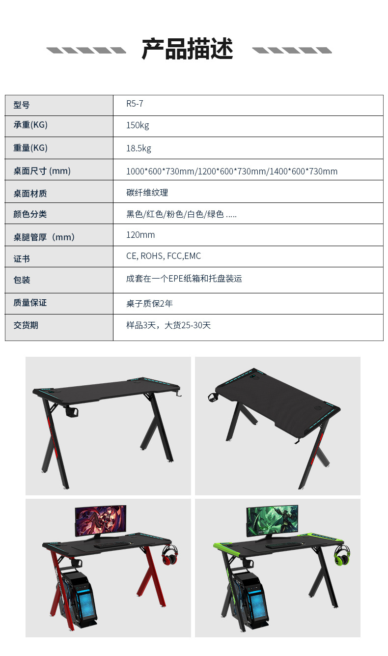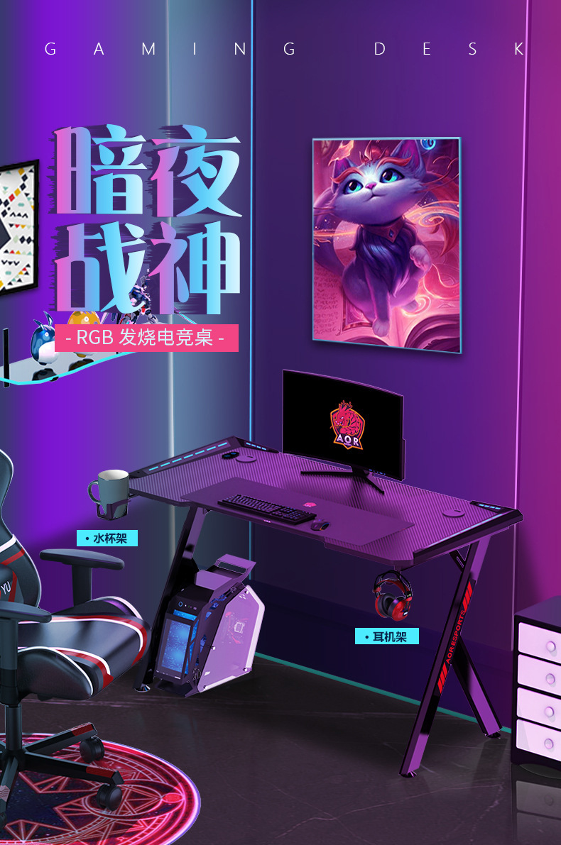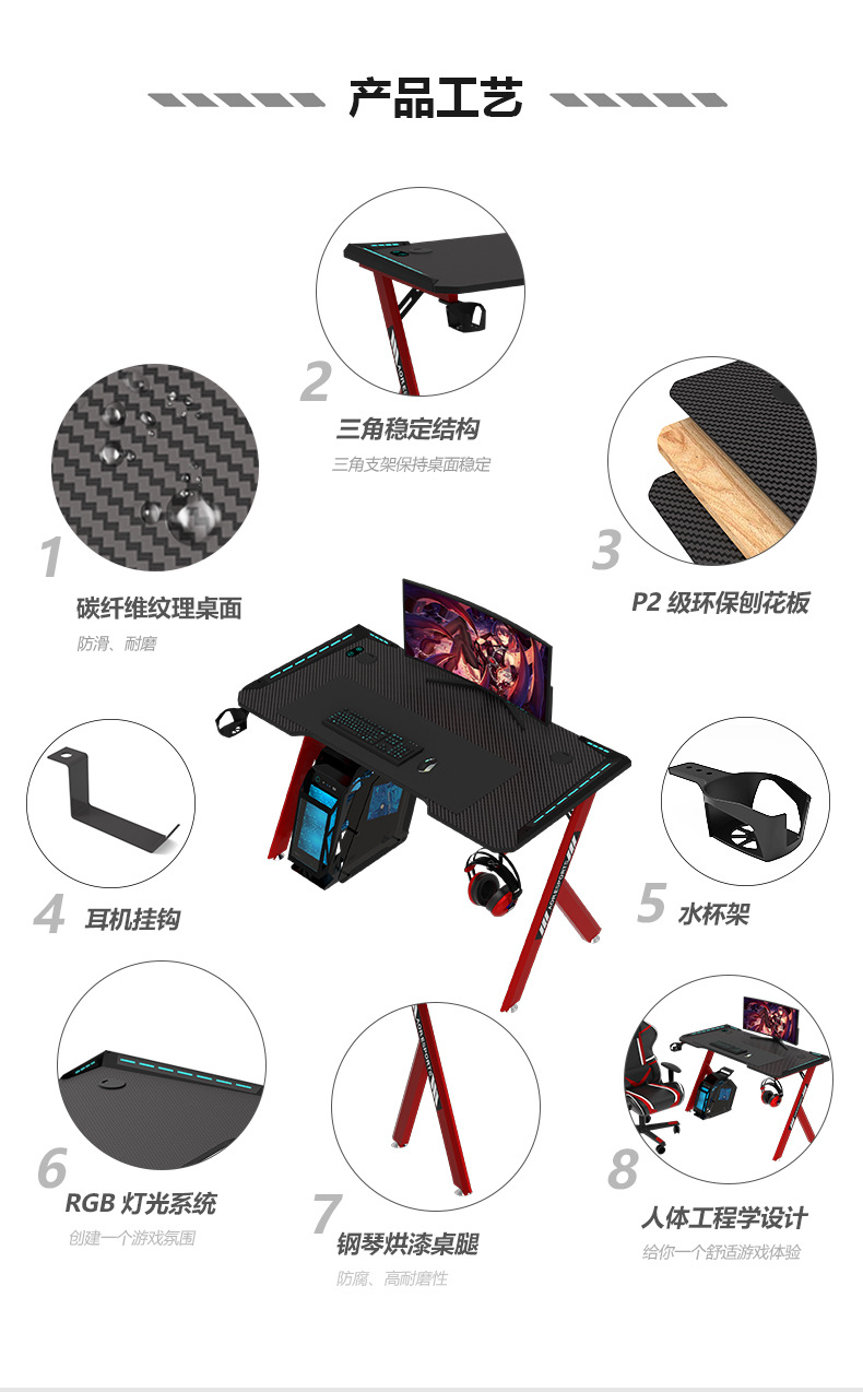 최고의 게이밍 책상, 게임용 책상, 가정용 컴퓨터 책상, 데스크탑 외국 무역용 RGB 조명 전자책상, 인터넷 카페 책상, 라이브 방송용 책상스토어 가기