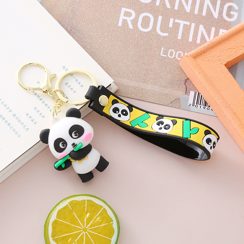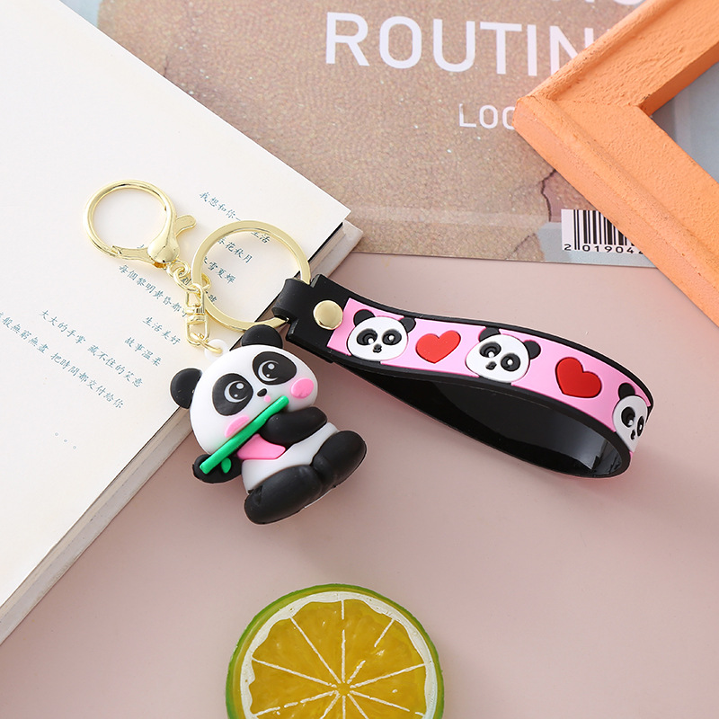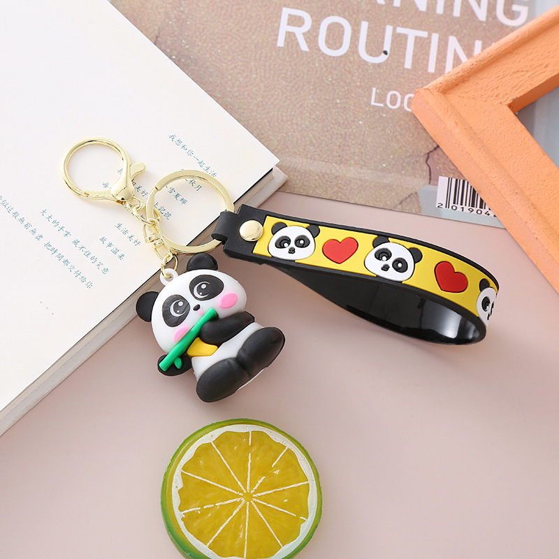 귀여운 만화 작은 팬더 키 체인 펜던트 자동차 가방 키 체인 인형 펜던트 커플 작은 선물 도매