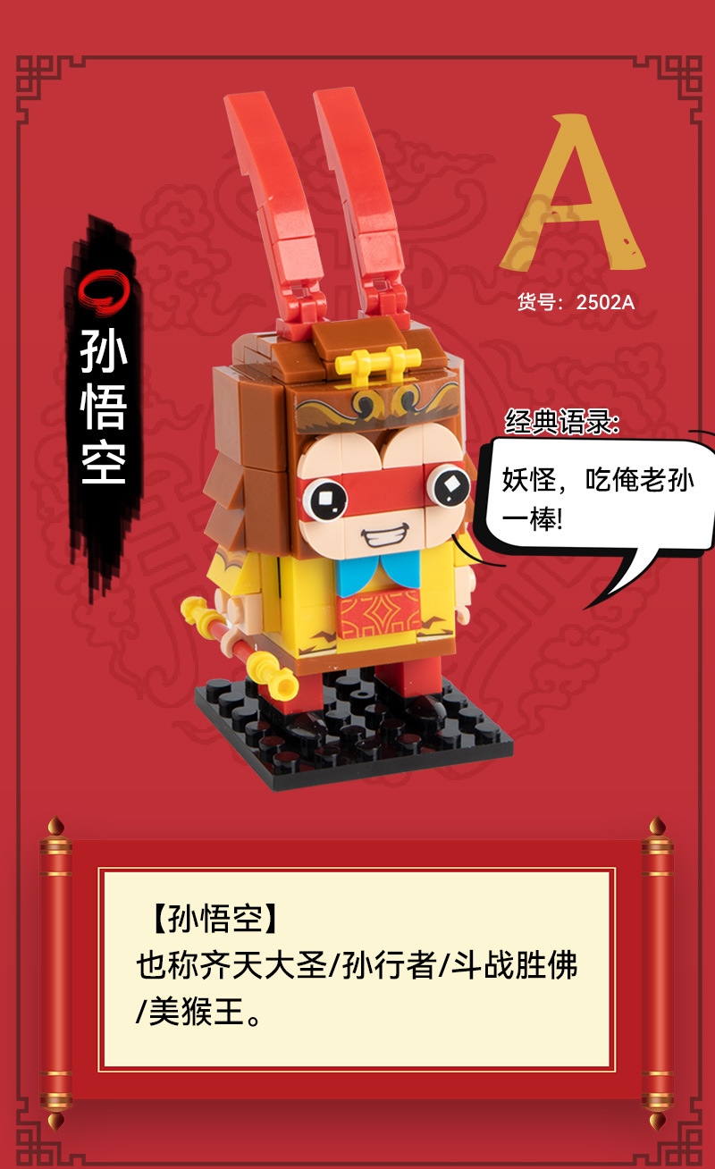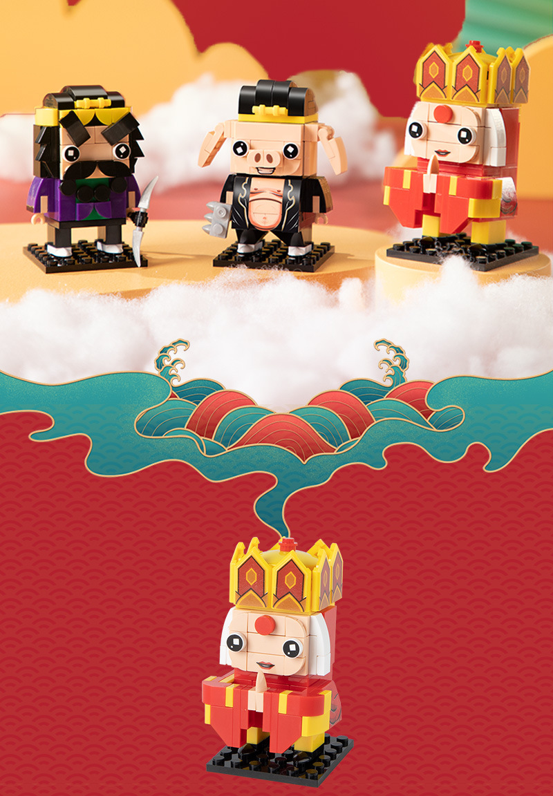 레고 중국 빌딩 블록과 호환 작은 곡물 사각형 머리 소년 서쪽 Wukong 장식품에 국가 조수 여행 어린이 교육 플러그인 장난감스토어 가기