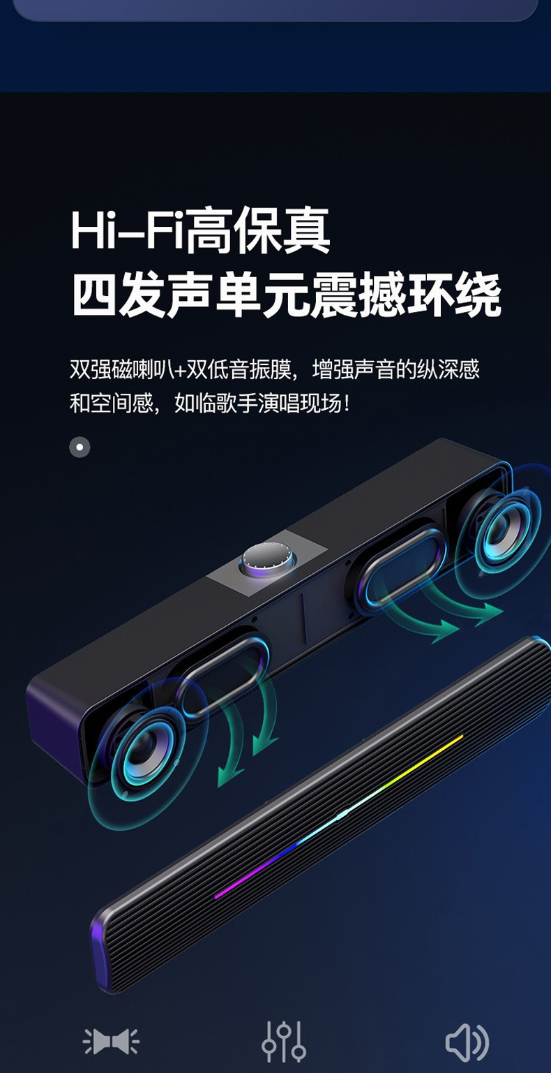 아마존 사운드 바 서브 우퍼 듀얼 스피커 카드 블루투스 스테레오 대용량 컴퓨터 사운드 바 다채로운 스피커스토어 가기