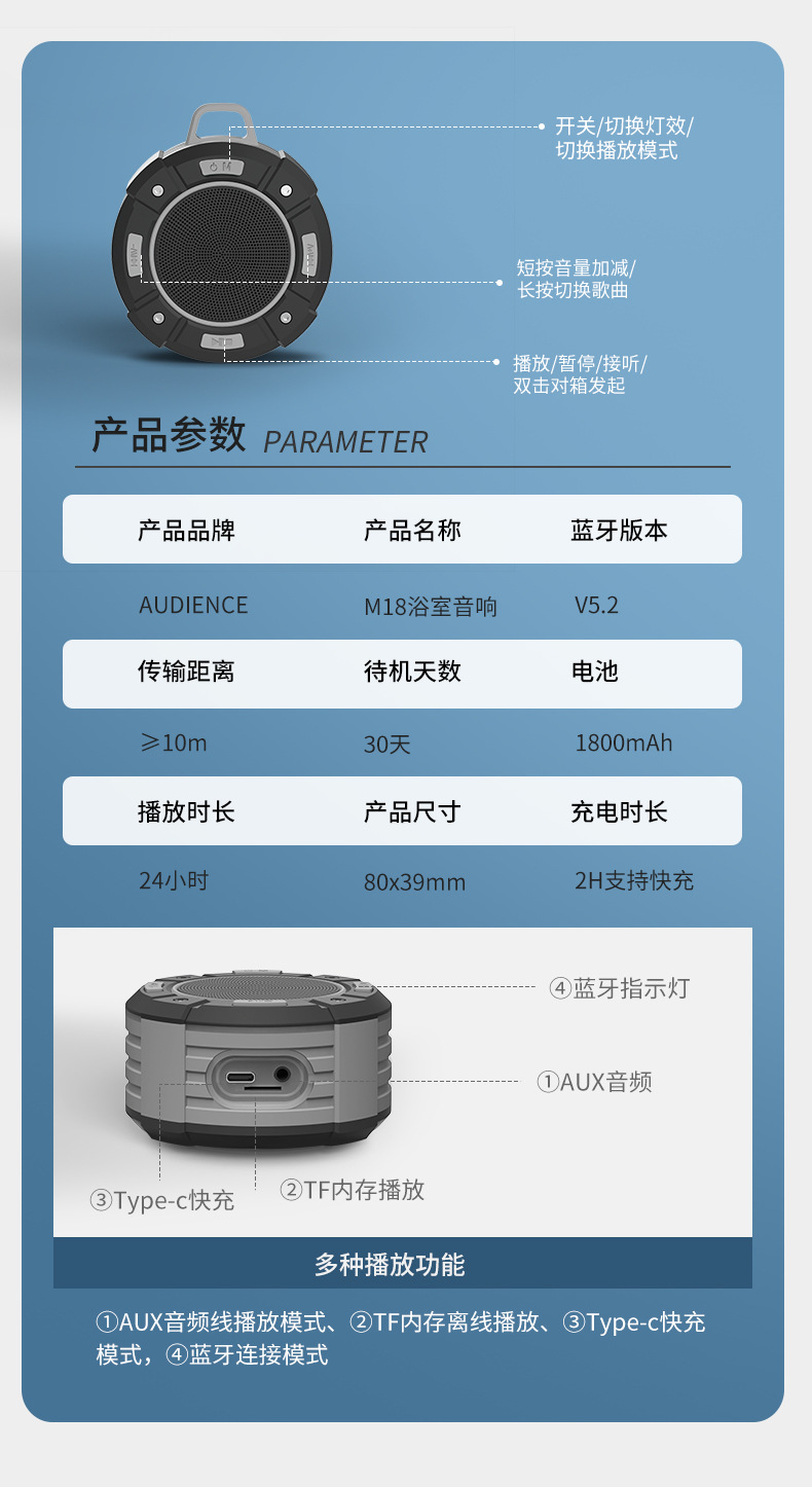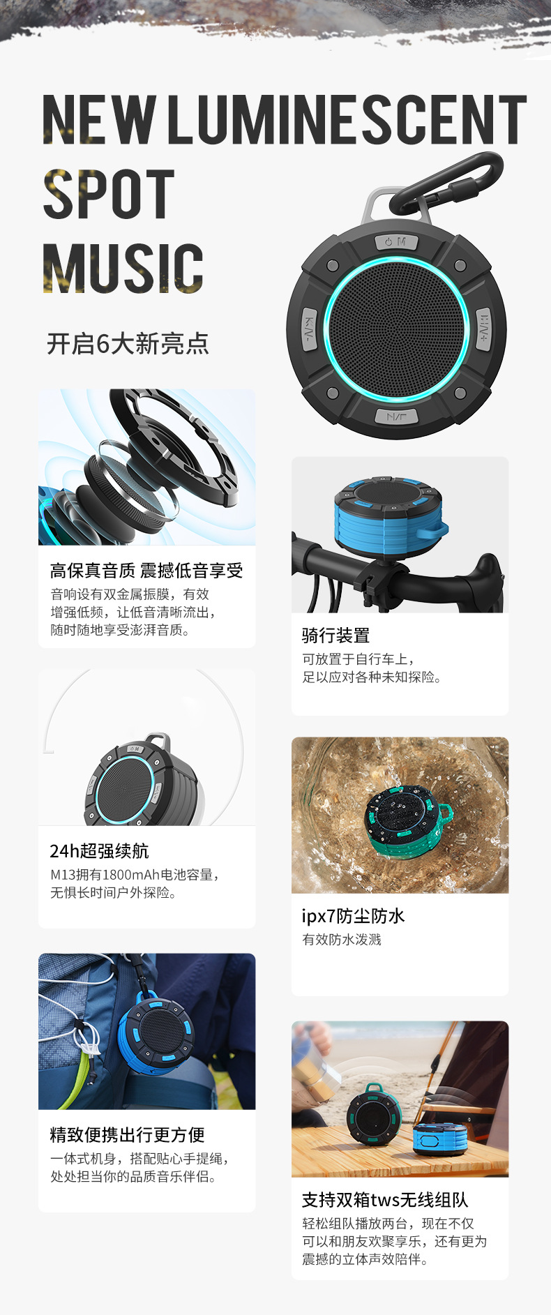 Audeince 휴대용 스피커 야외 라이딩 방수 무선 동적 호흡등 고출력 무거운 서브 우퍼