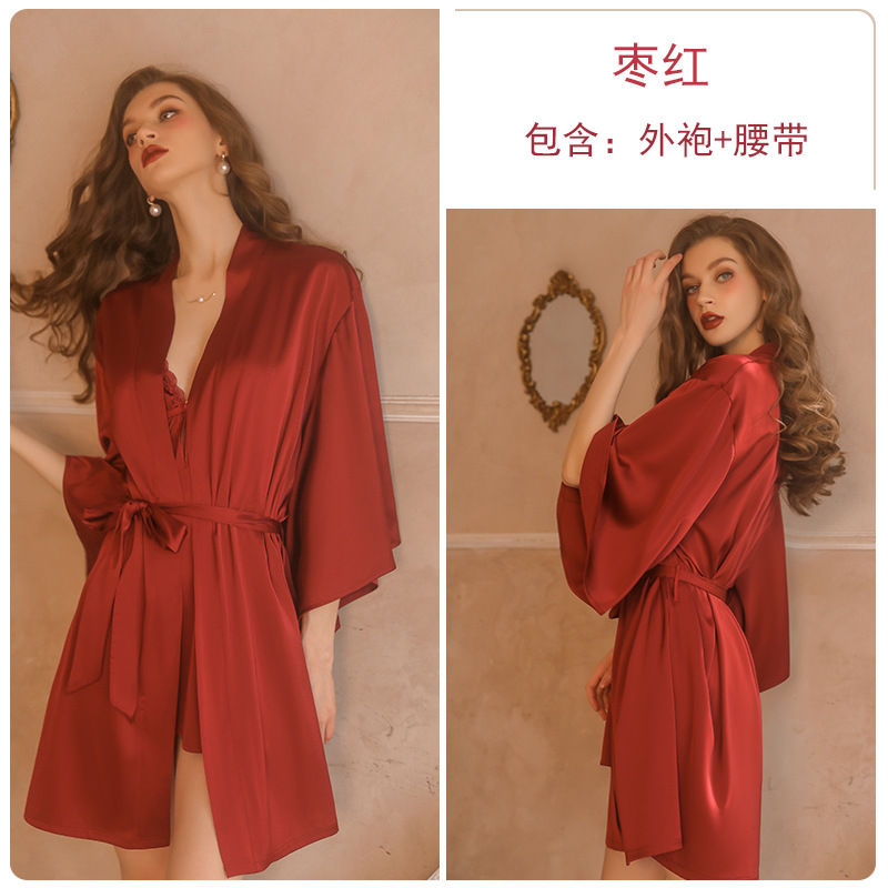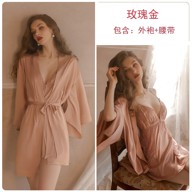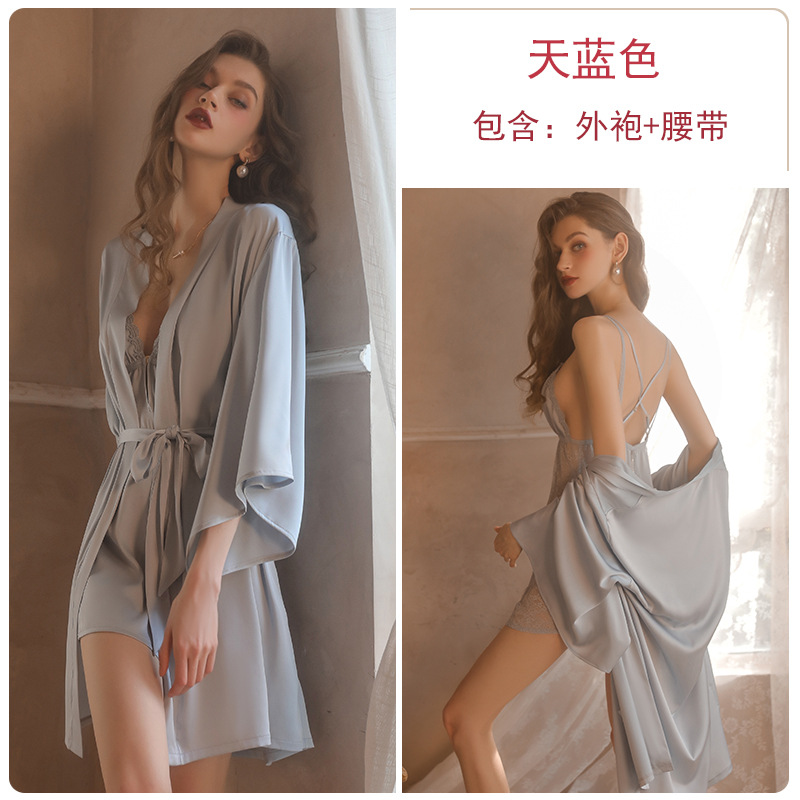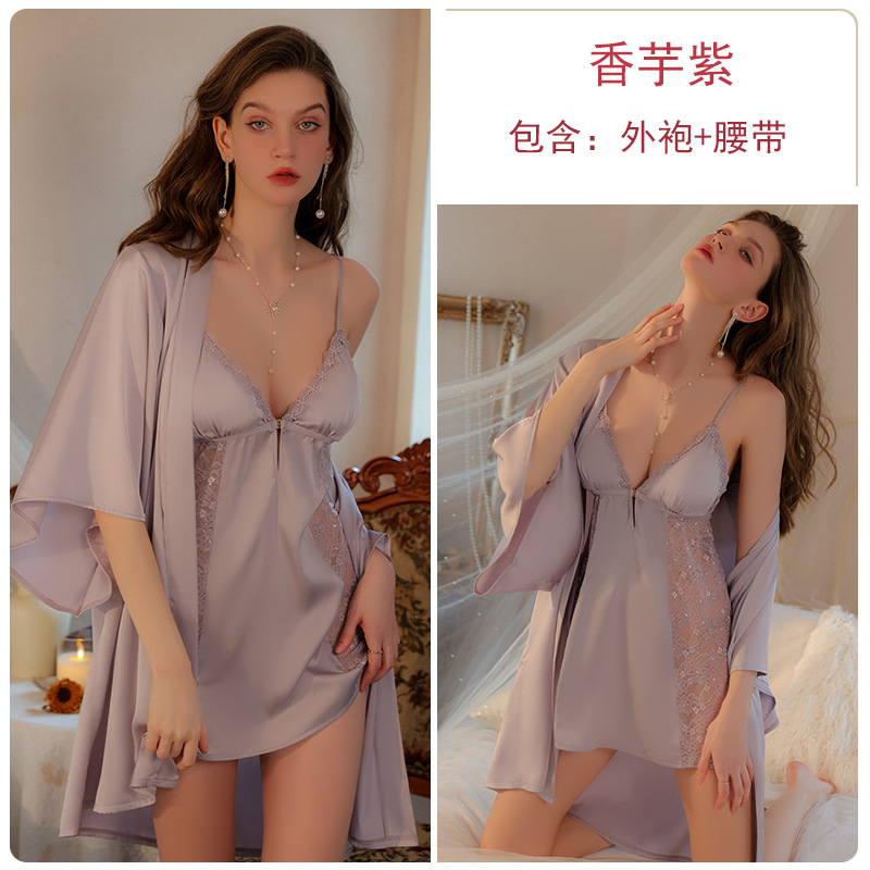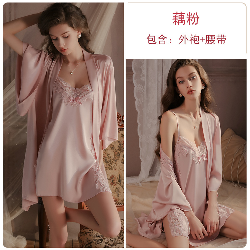 Guiruo 브랜드 섹시한 순수한 욕망 잠옷 레이스 단색 스트랩 스커트 레이스 아침 가운 가운 가정 옷 세트 1690