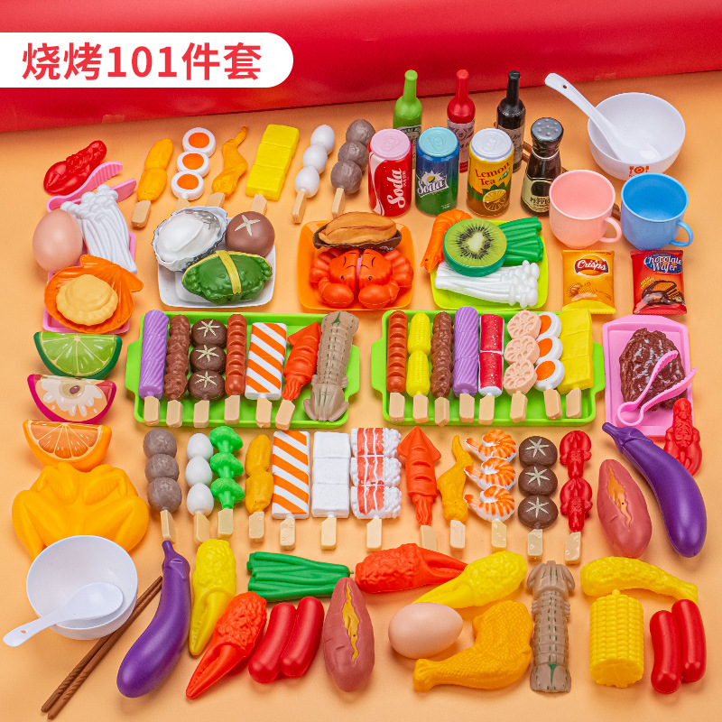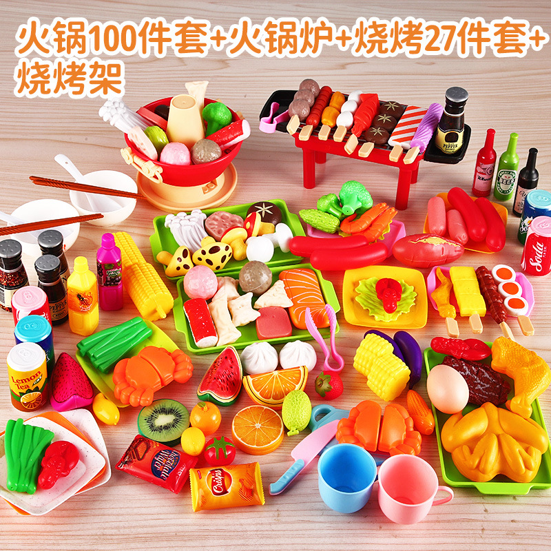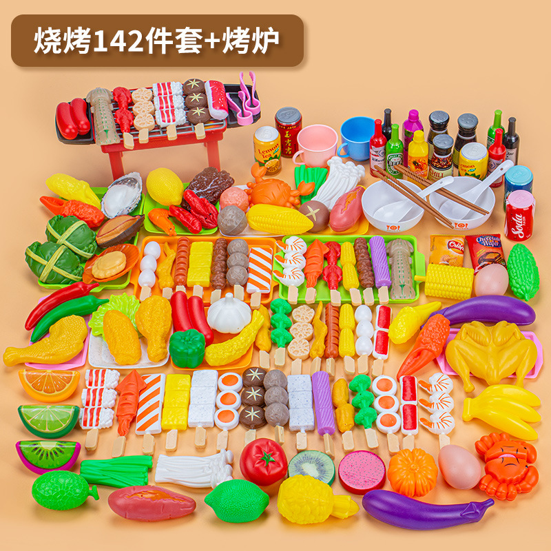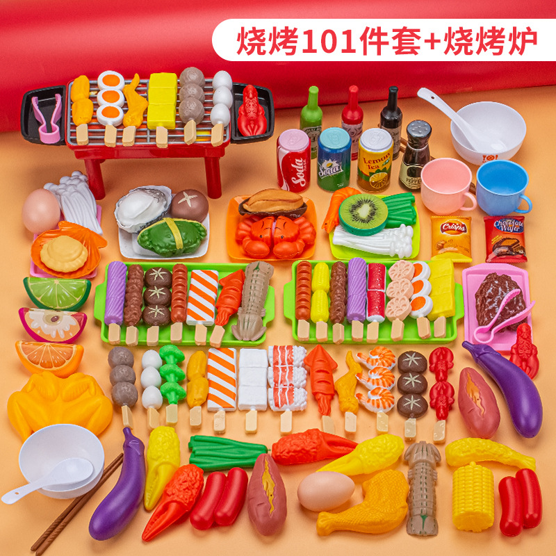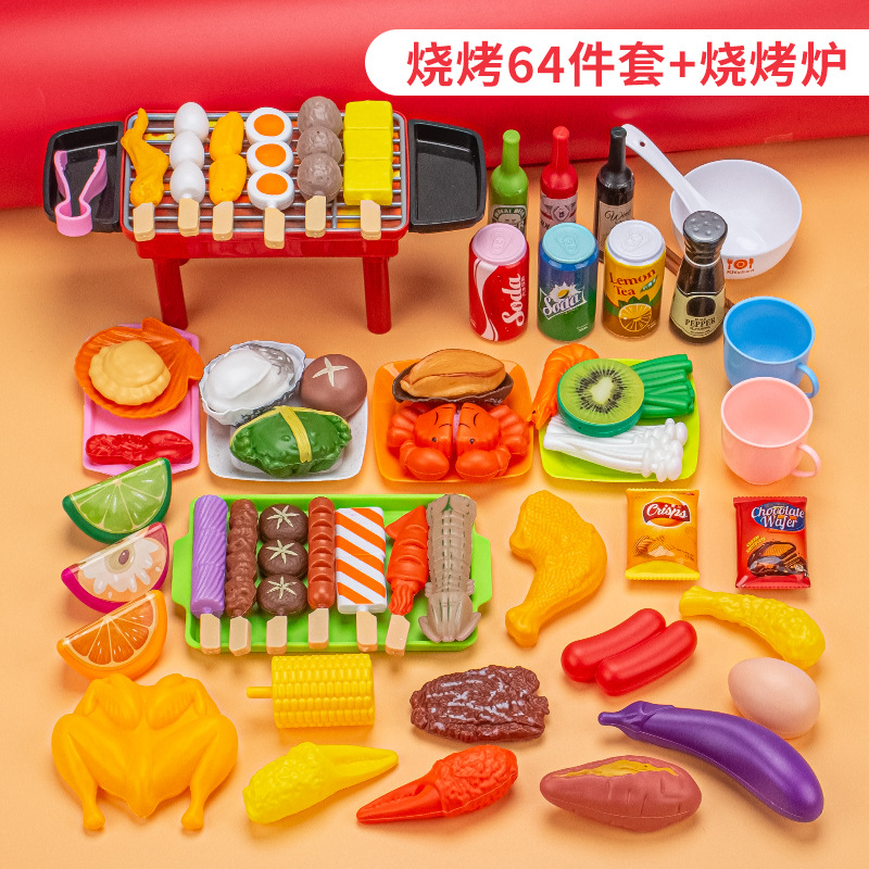 어린이 놀이 집 장난감 시뮬레이션 음식 바베큐 오븐 과일과 야채 냄비 남성과 여성 주방 요리 세트 국경스토어 가기