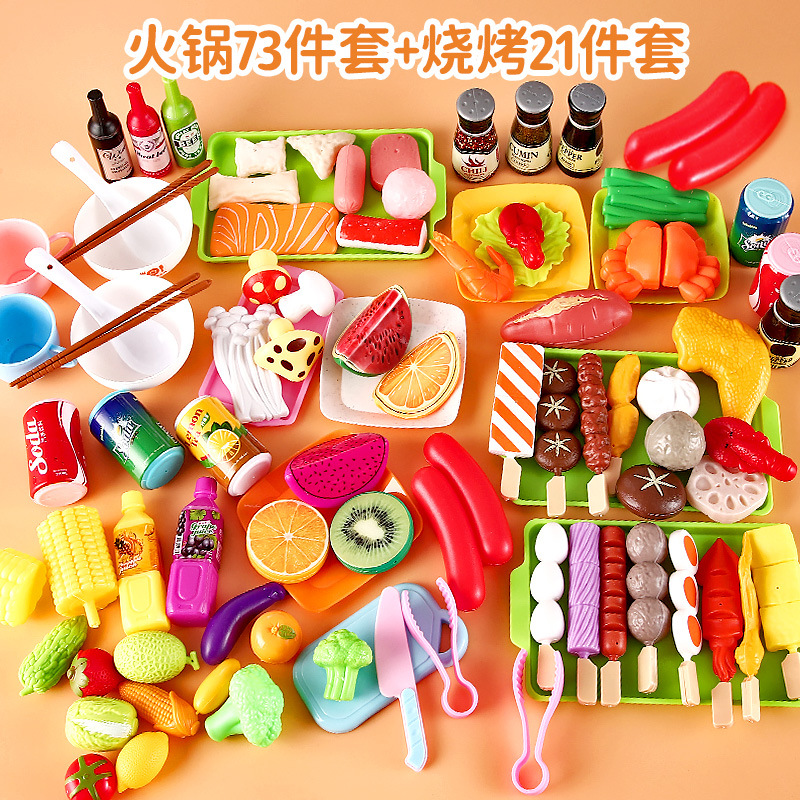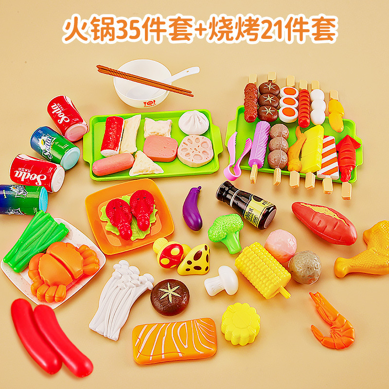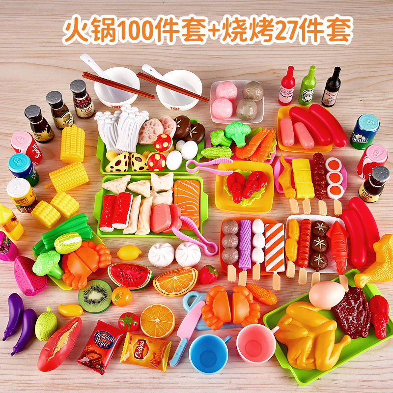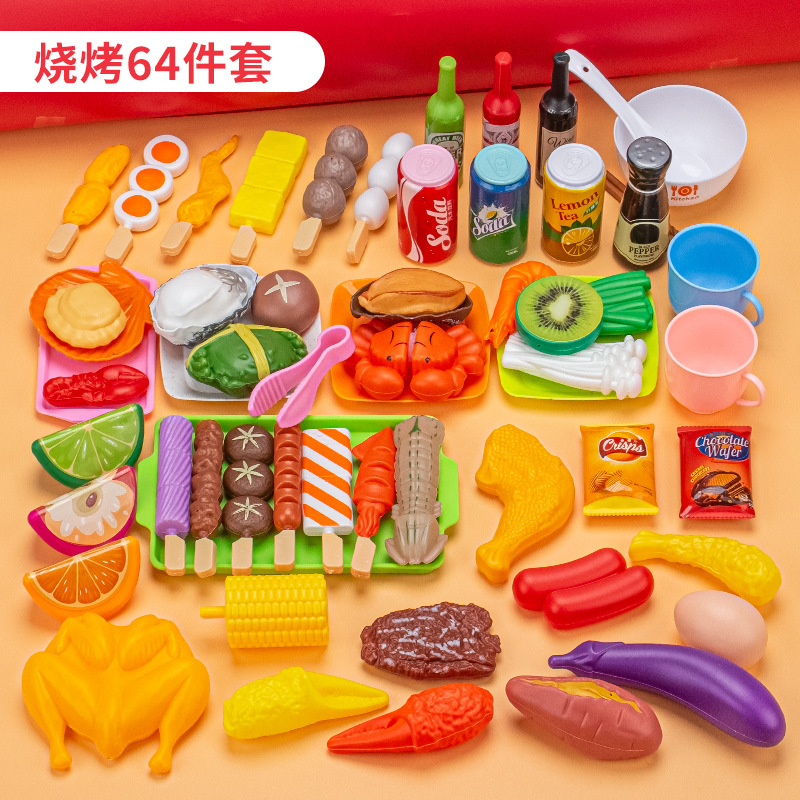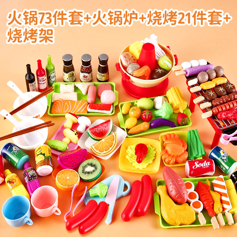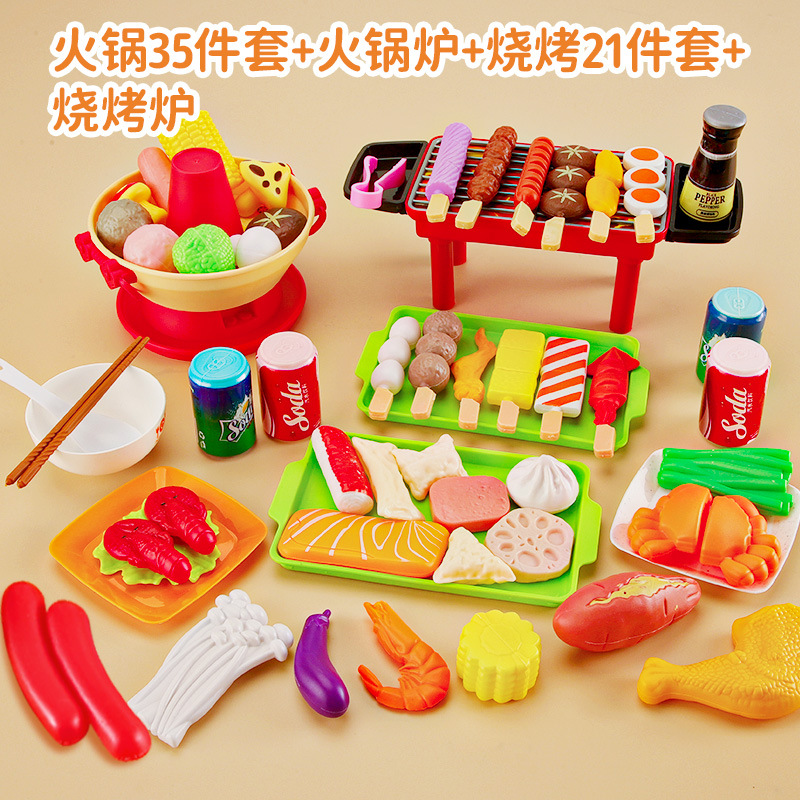 어린이 놀이 집 장난감 시뮬레이션 음식 바베큐 오븐 과일과 야채 냄비 남성과 여성 주방 요리 세트 국경스토어 가기
