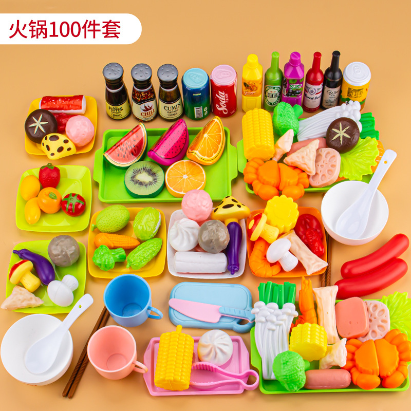 어린이 놀이 집 장난감 시뮬레이션 음식 바베큐 오븐 과일과 야채 냄비 남성과 여성 주방 요리 세트 국경