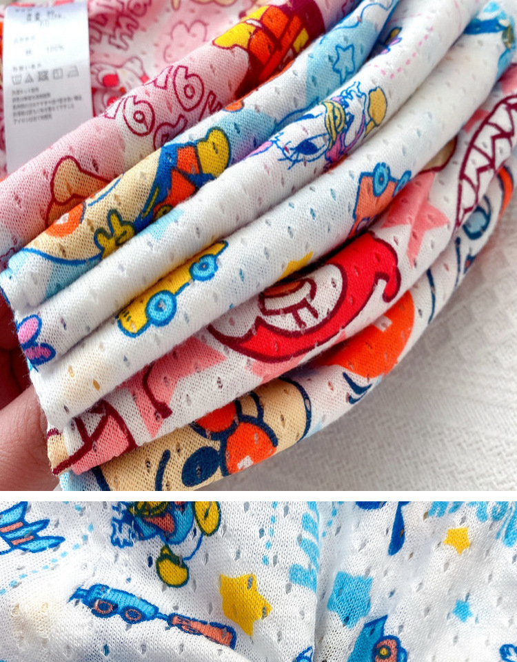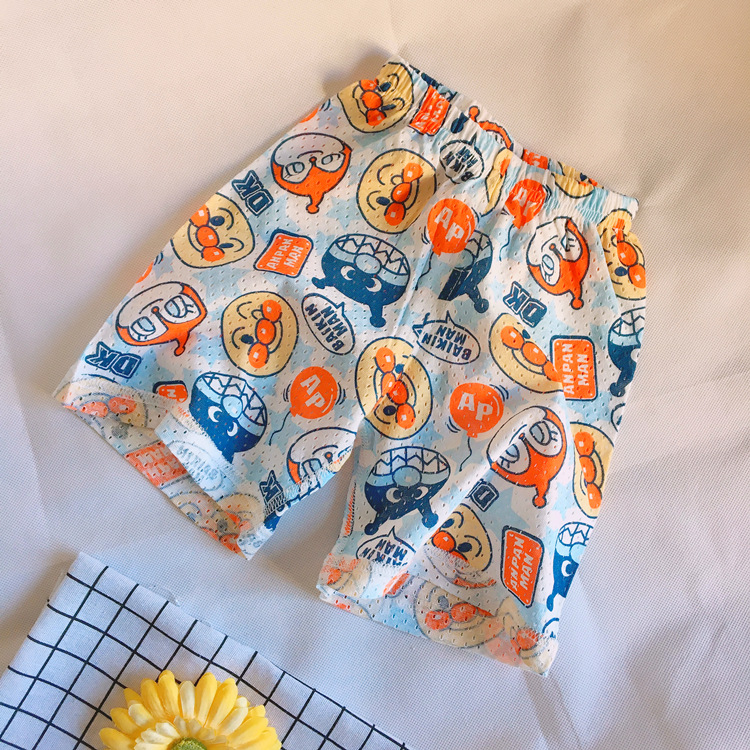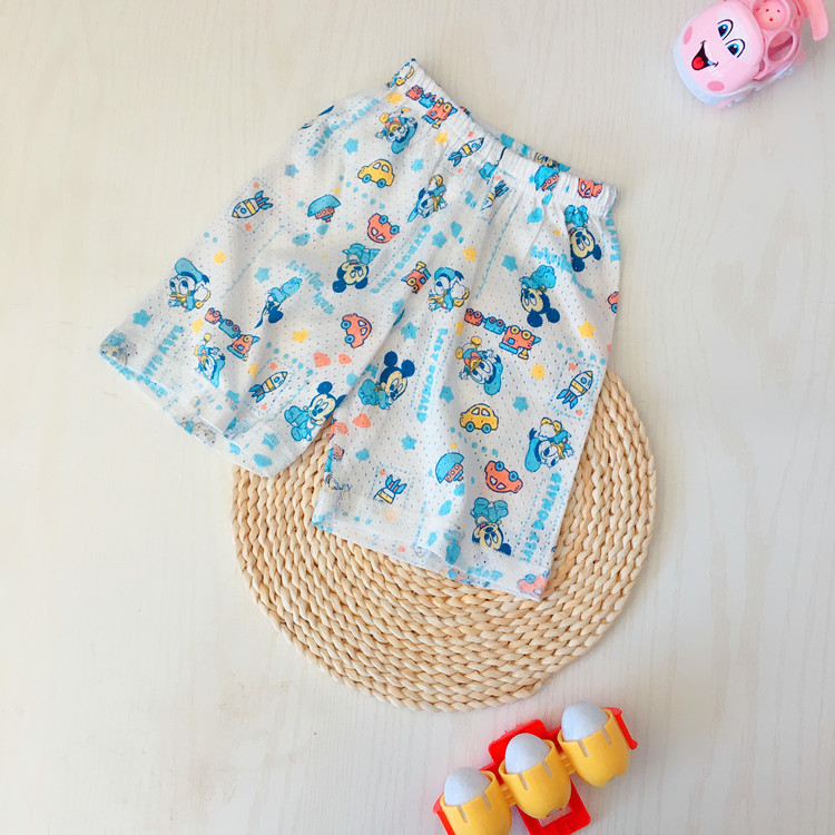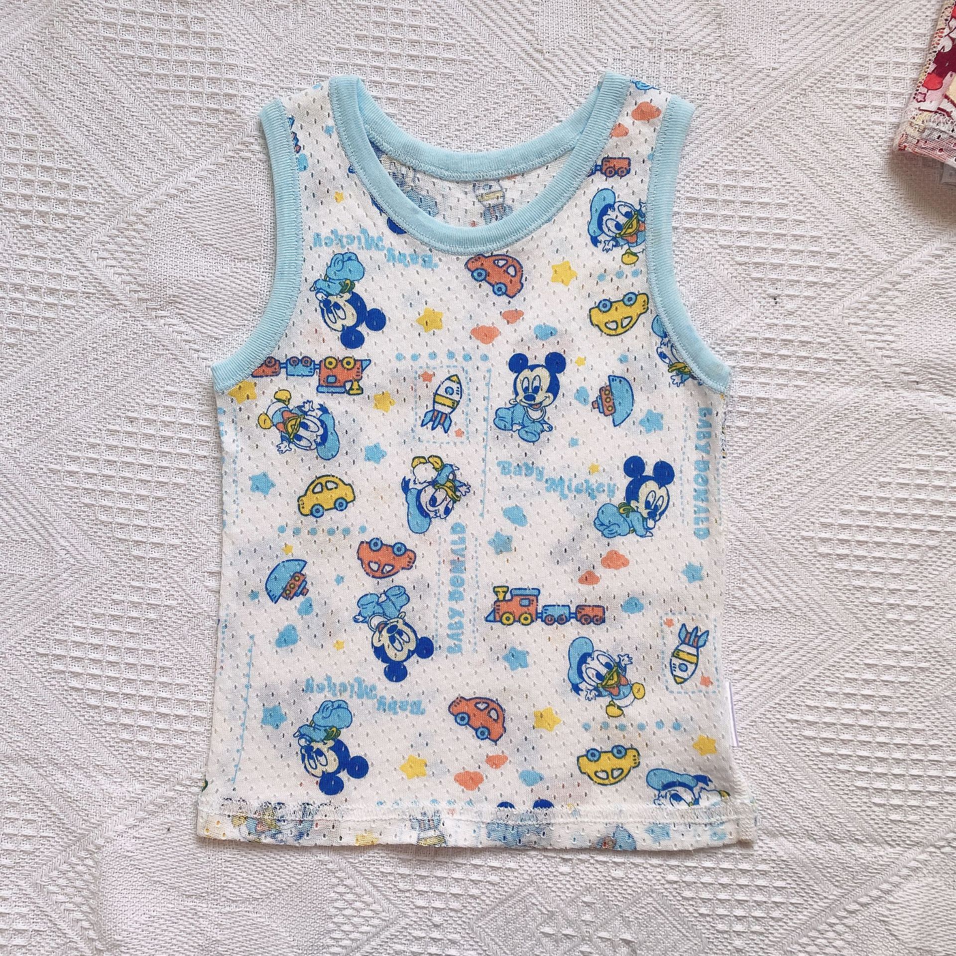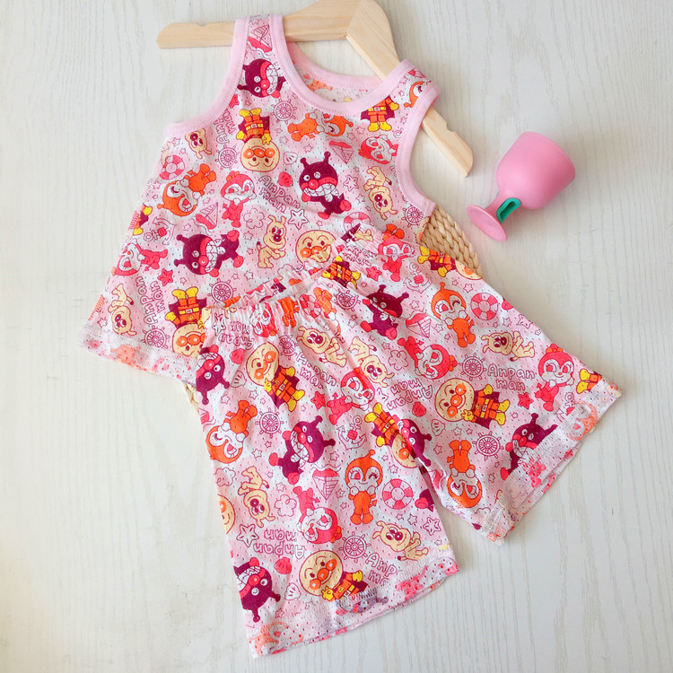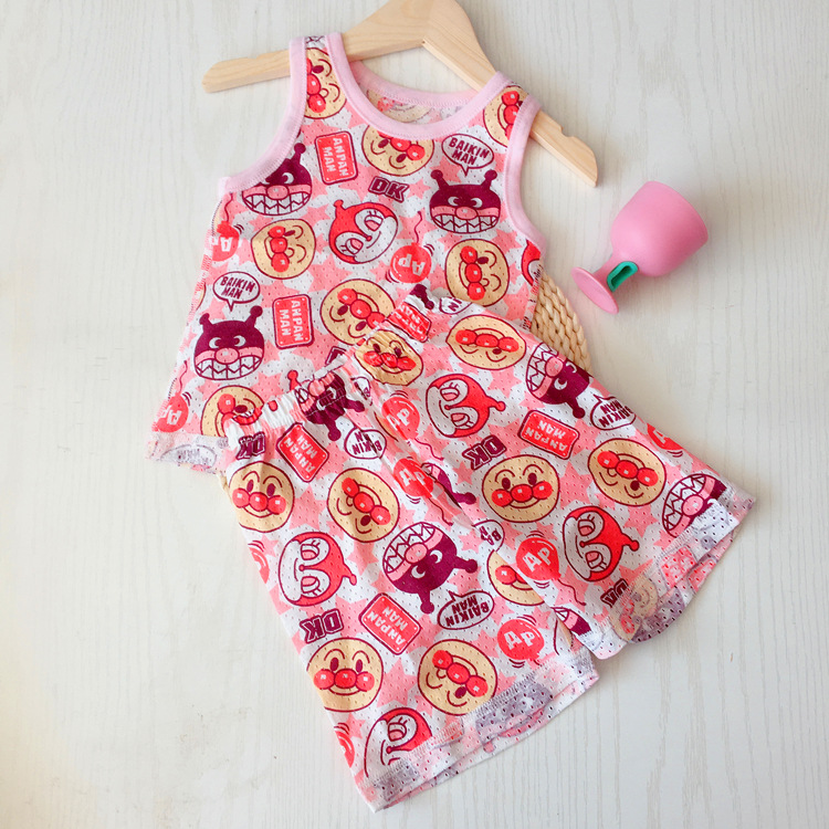 대외 무역 아기 얇은 구멍 옷 여름 속건 통기성 어린이 호흡 면 조끼 탑 5 배꼽 바지 세트
