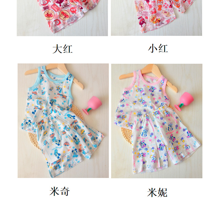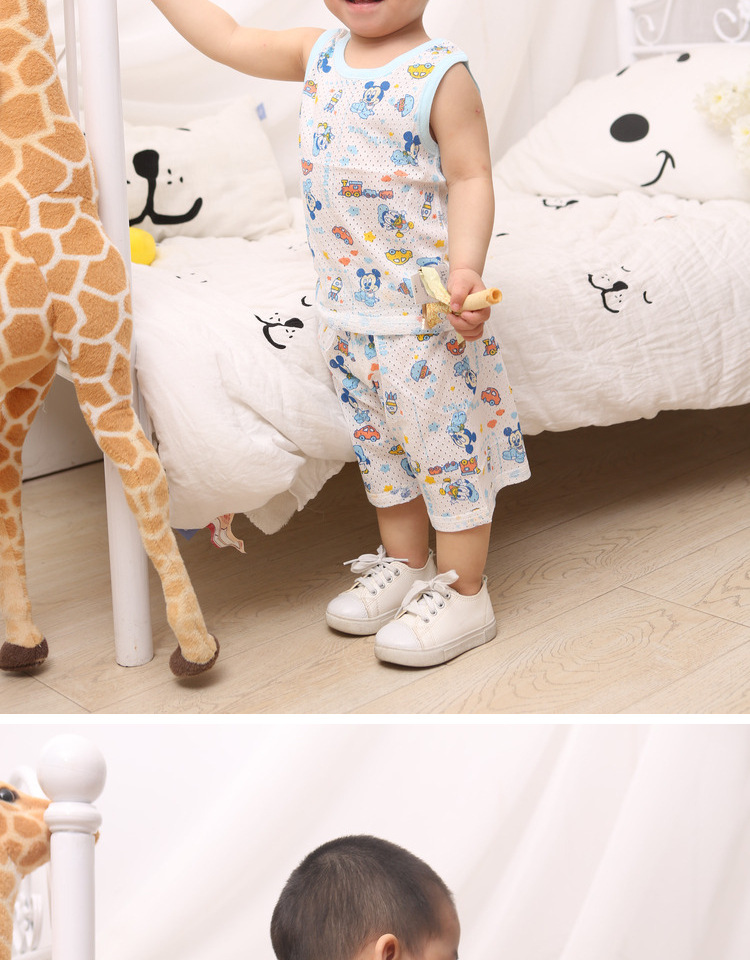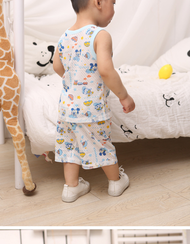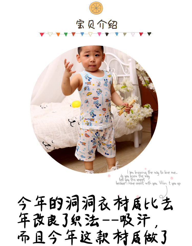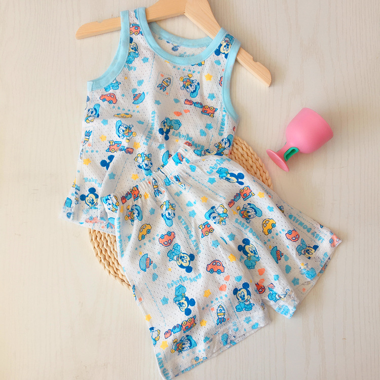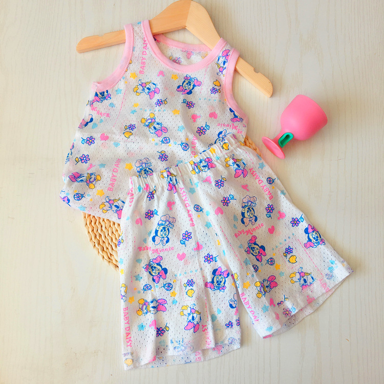 대외 무역 아기 얇은 구멍 옷 여름 속건 통기성 어린이 호흡 면 조끼 탑 5 배꼽 바지 세트스토어 가기