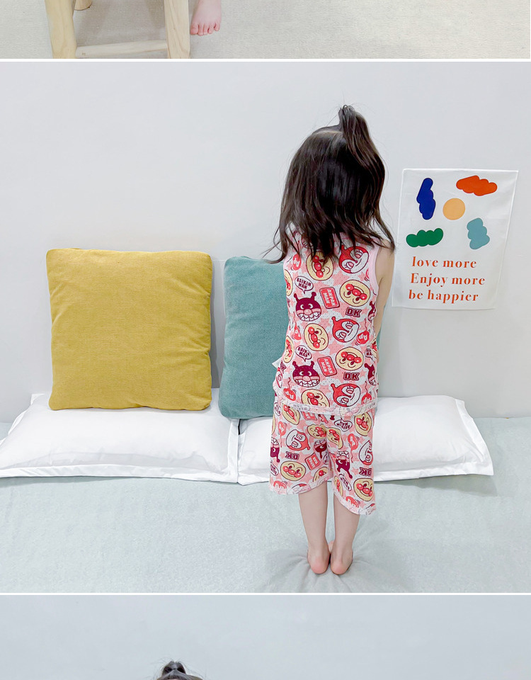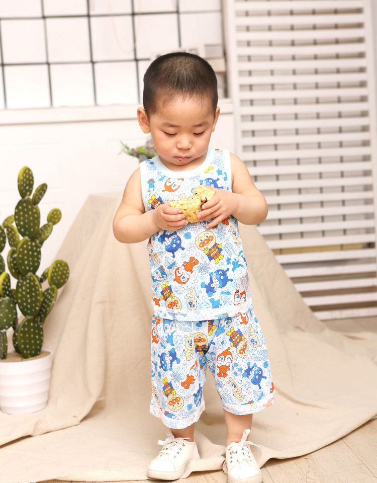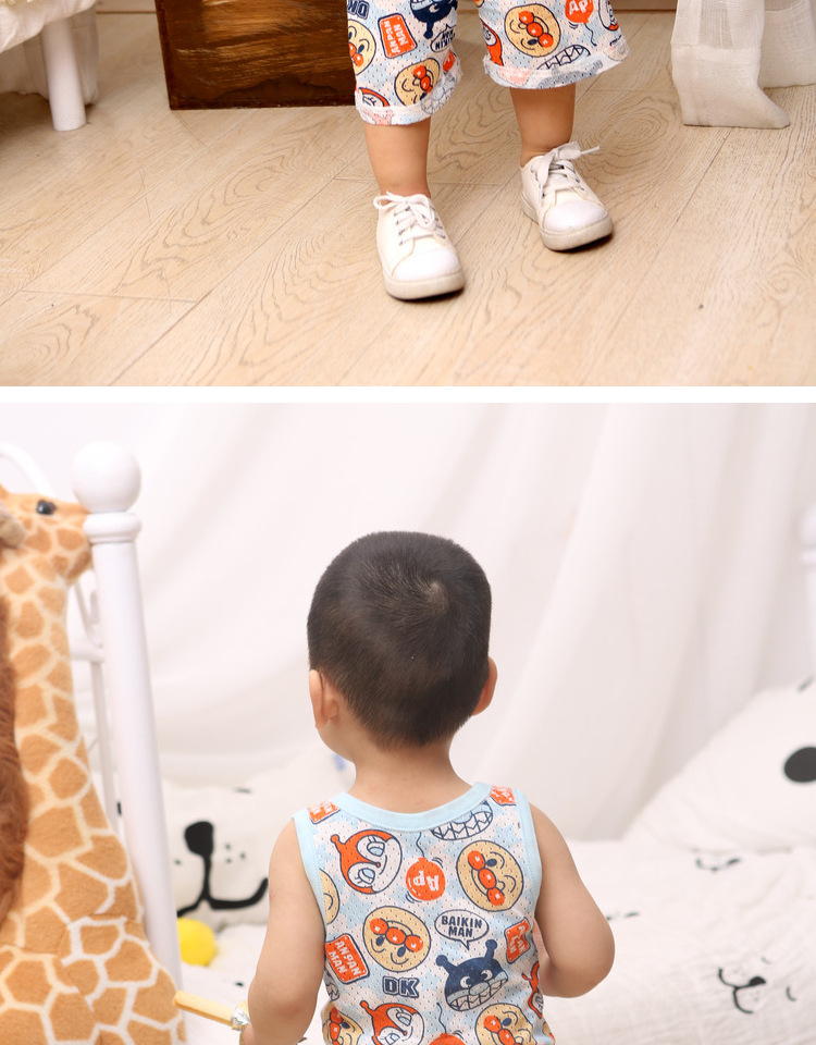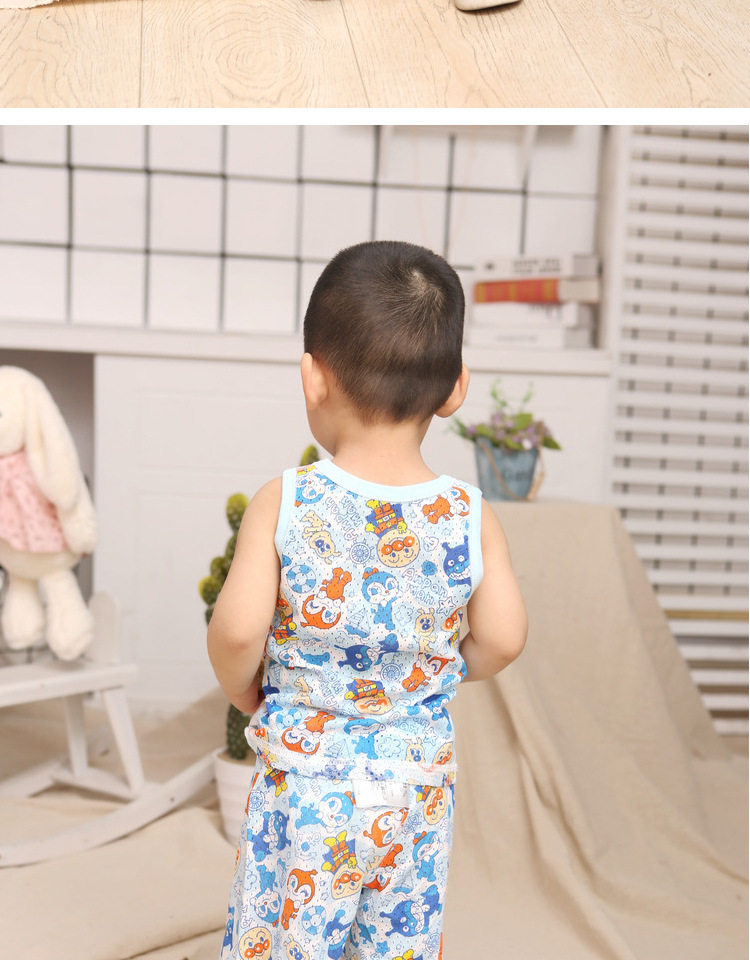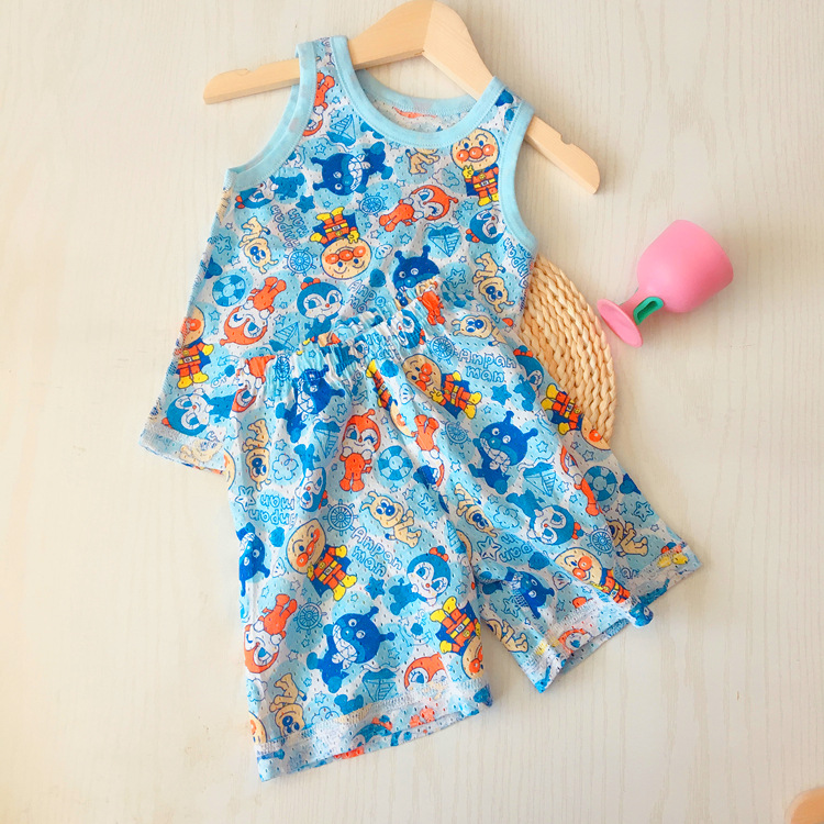 대외 무역 아기 얇은 구멍 옷 여름 속건 통기성 어린이 호흡 면 조끼 탑 5 배꼽 바지 세트스토어 가기
