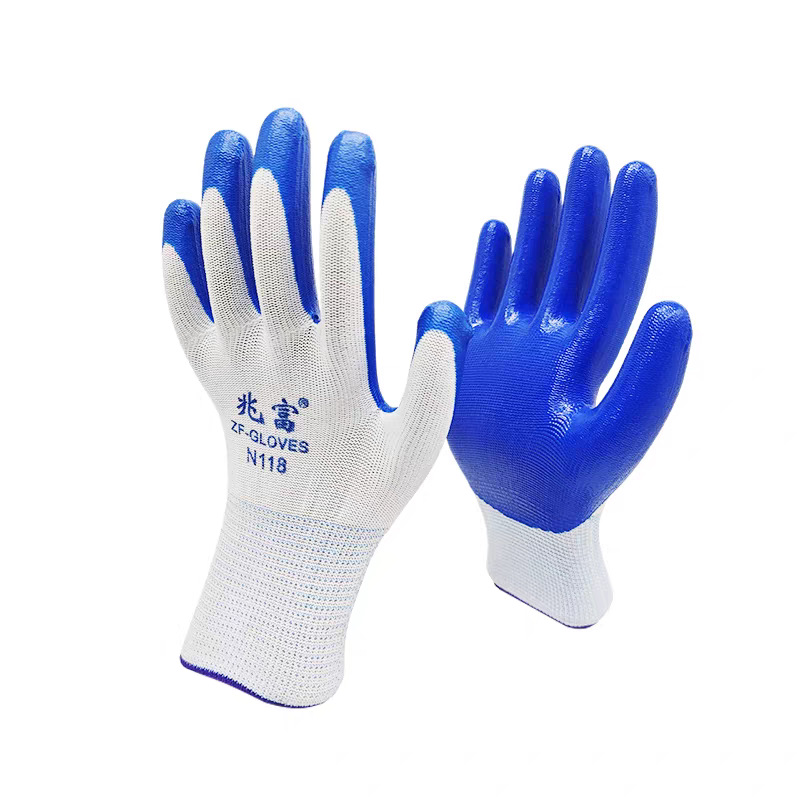 노동 장갑 니트릴 담근 고무 면사 나일론 미끄럼 방지 내마모성 사이트 보호 남성 및 여성 작업 장갑 도매