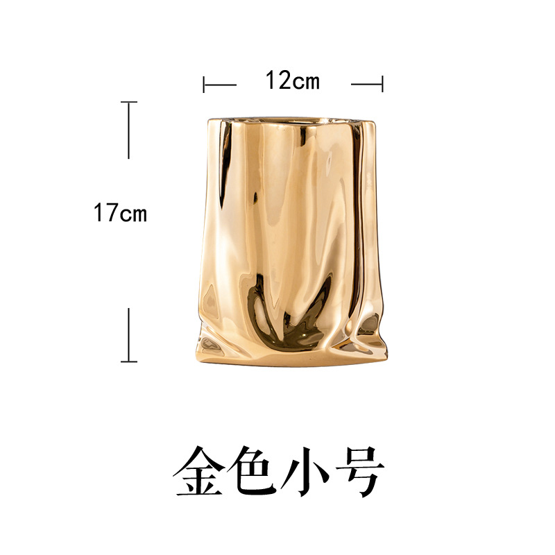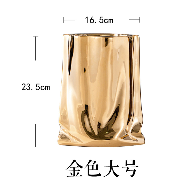抖音网红轻度奢发财红果仿真花电镀金布袋陶瓷花瓶客厅电视柜摆件