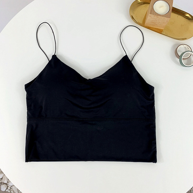 여성용 여름 아이스 실크 무봉제 짧은 캐미솔, 일체형 고정 컵, 아름다운 등, 이너웨어, 아우터, 슬림 바닥, 가슴 랩스토어 가기